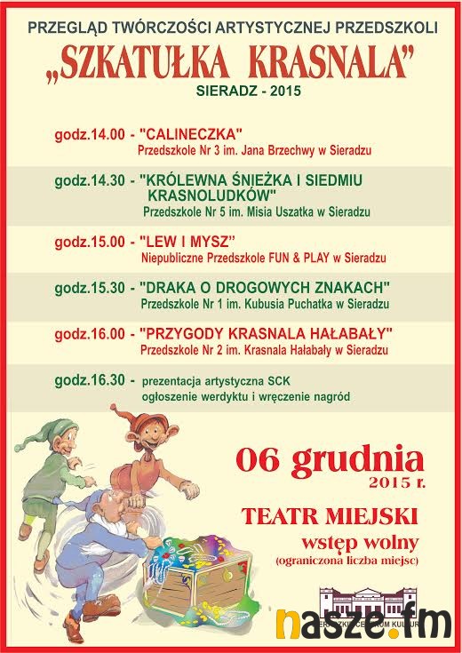 Nie ma sympatyczniejszych aktorów od tych, którzy zaprezentują się w najbliższą niedzielę (6 grudnia) na scenie sieradzkiego teatru. Przed nami kolejna edycja "Szkatuły Krasnala", czyli przeglądu twórczości artystycznej przedszkoli z Sieradza.