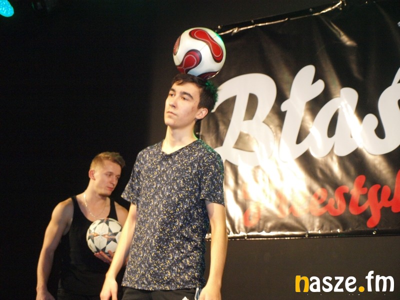 Błaszki Freestyle Cup wymyślił przed dwoma laty błaszkowianin Krzysztof Justyński, który piłkarskimi trikami zainteresował się przez internet. Najpierw były samodzielne próby, które z czasem przerodziły się w pasję. Justek - jak nazywany jest Krzysztof w światku freestyle'rów - najpierw sam zaczął jeździć na zawody, aż w końcu postanowił zorganizować turniej w rodzinnym mieście. Dwie pierwsze edycje odbyły się w hali sportowej w Błaszkach, dziś po raz pierwszy finały rozegrano na scenie Centrum Kultury. - To była bardzo dobra zmiana, zawody stały się jeszcze bardziej widowiskowe, zawodnicy bardzo chwalili sobie tą przeprowadzkę - powiedział nam Krzysztof Justyński. Turniej przeprowadzono w trzech kategoriach: sick three (polegająca na wykonaniu kombinacji składającej się z 3. trików), routine (układy pod muzykę) i battle (pojedynek jeden na jeden, w którym zawodnicy prezentują się sędziom na zmianę w trzech 30. sekundowych prezentacjach). W finale kat. battle spotkali się: Piotr Bujak i Adrian Duszak. Po niesamowitym pojedynku, stojącym na bardzo wysokim poziomie wygrał ten drugi, który zaprezentował dużo oryginalnych sztuczek, w tym bardzo efektowne z elementami akrobatyki. Zawodników oceniali czołowi polscy freestyle'rzy w tym ubiegłoroczny mistrz Europy Daniel Mikołajek. Turniejowe występy przeplatane były z konkursami dla publiczności, kibice - głównie ci najmłodsi - sami mogli spróbować prostych trików. Widzów porwał również do tańca finalista 2. edycji programu You Can Dance Patryk Rożniecki.