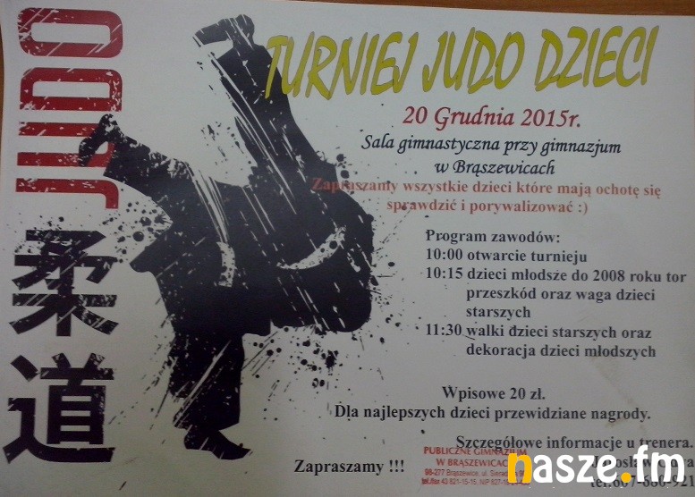 Turniej judo dla dzieci odbędzie się w najbliższą niedzielę w sali gimnazjum w Brąszewicach. W zawodach mogą wziąć udział już kilkuletnie maluchy.