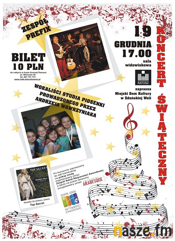W sali widowiskowej ratusza wystąpi zespół muzyczny „Prefix” oraz wokaliści Studia Piosenki prowadzonego przez Andrzeja Wawrzyniaka.