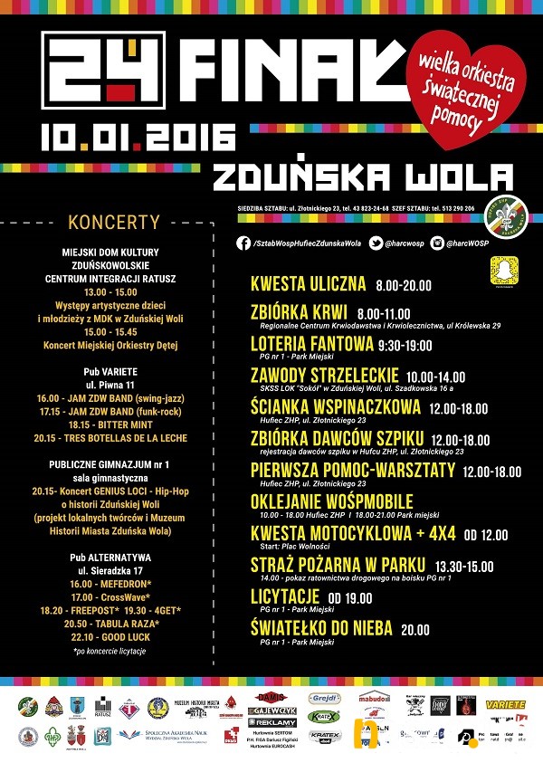 W Zduńskiej Woli będą działały 3 orkiestrowe sztaby: w Hufcu ZHP przy ul. Złotnickiego, w Publicznym Gimnazjum nr 1 przy ul. Parkowej oraz sztab Porozumienia Ponad Podziałami "Razem", który będzie znajdował się w Domu Kultury "Lokator" przy ul. Łaskiej.