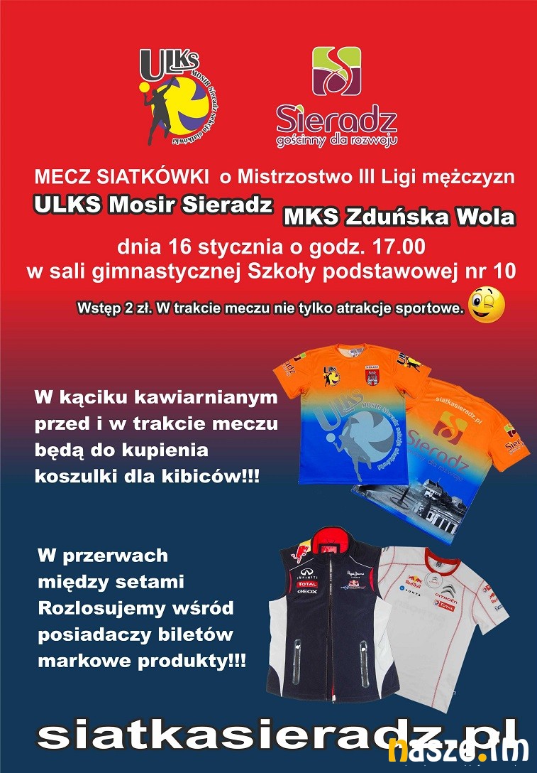Na wszystkich, którzy przyjdą na mecz i kupią bilet (jedyne 2 zł), czekają dodatkowe atrakcje (szczegóły na plakacie). Początek siatkarskich derbów w Sieradzu o 17:00.