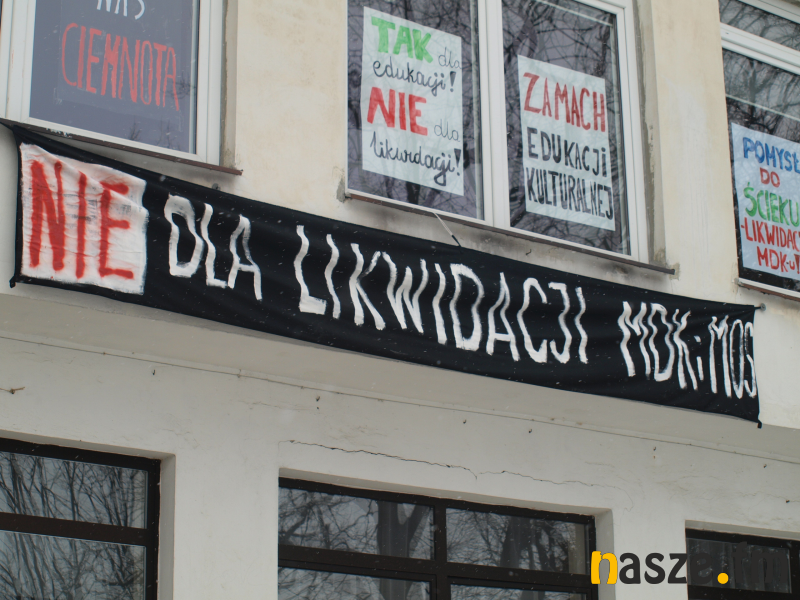 "Pomysł do ścieku – likwidacja MDK-u" to jeden z plakatów, które można ujrzeć w oknach Zespołu Placówek Wychowania Pozaszkolnego w Sieradzu. Budynek stał się manifestem przeciw uchwale przegłosowanej przez sieradzkich radnych powiatowych, która mówi o zamiarze likwidacji placówki. Rodzice uczniów zbierają podpisy i idą po pomoc do przedstawicieli władz krajowych.