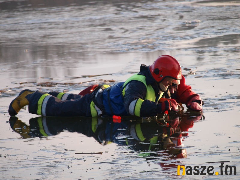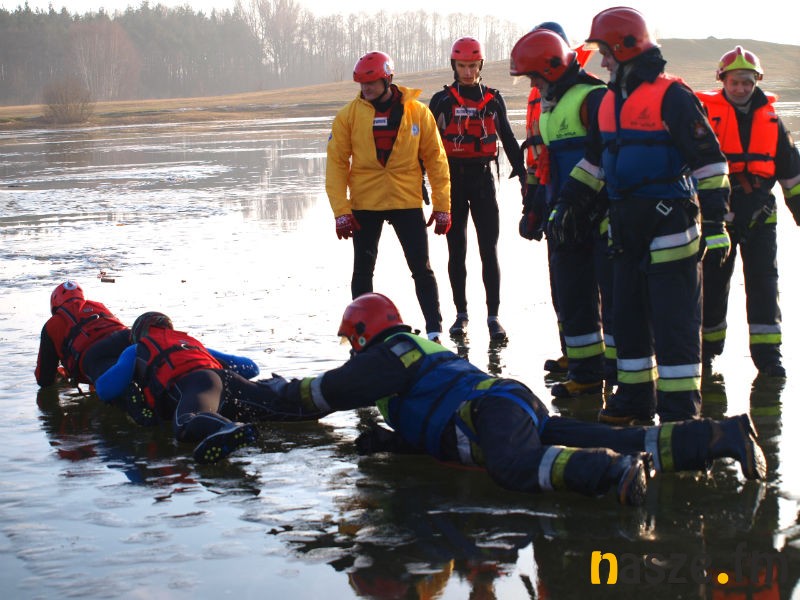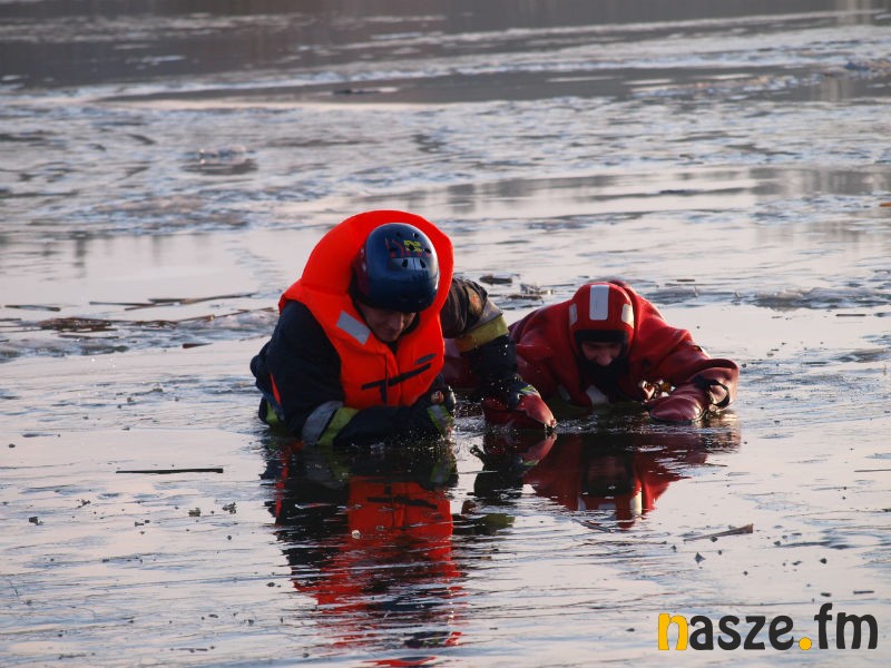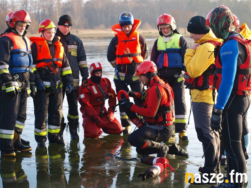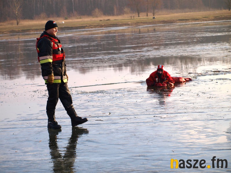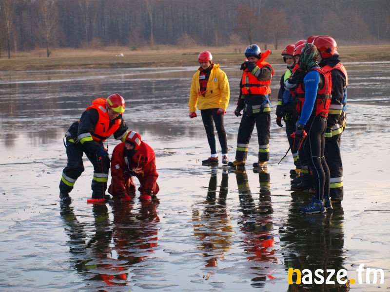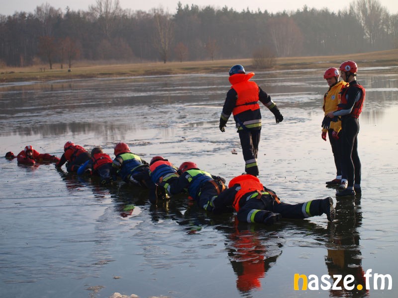 Nad zbiornikiem wodnym Kępina w Zduńskiej Woli odbyły się dziś wspólne ćwiczenia miejscowych strażaków oraz ratowników Wodnego Ochotniczego Pogotowia Ratunkowego. Manewry miały na celu pokazanie młodzieży, jak udzielić komuś fachowej pomocy, gdy załamie się pod nim lód.