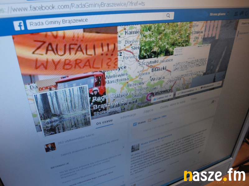 Facebookowy profil „Rada Gminy Brąszewice” istnieje prawie od roku. Prowadzi go jeden z radnych, Jacek Piotrowski. Na stronie zamieszcza informacje m.in. z przebiegu sesji czy rzeczy dotyczące poszczególnych uchwał.
