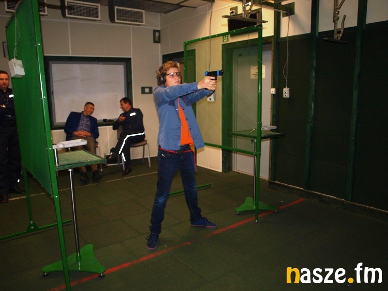 Jędrzej swoją przygodę w zduńskowolskiej policji rozpoczął od spotkania z komendantem Włodzimierzem Kłobusem. Potem Jacek Kozłowski, rzecznik prasowy policji w Zduńskiej Woli oprowadził go po zakamarkach komendy. Zwycięzca naszej licytacji poznał od kuchni pracę zduńskowolskich policjantów. Zwiedził m.in. areszt, stanowisko dowodzenia czy strzelnicę, gdzie pod okiem instruktora miał okazję "postrzelać" na specjalnym symulatorze treningowym.