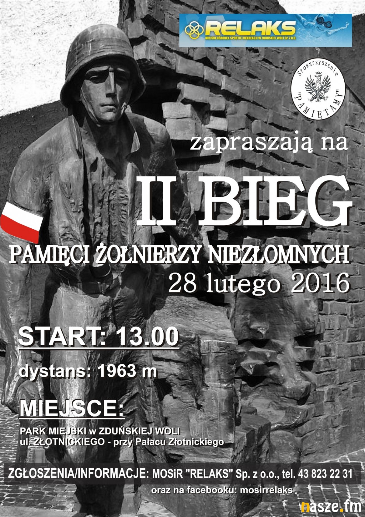 Miejski Ośrodek Sportu i Rekreacji "Relaks" w Zduńskiej Woli oraz Stowarzyszenie "Pamiętamy" zapraszają na II Bieg Pamięci Żołnierzy Niezłomnych.