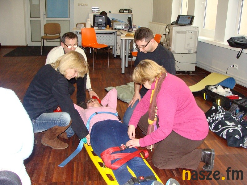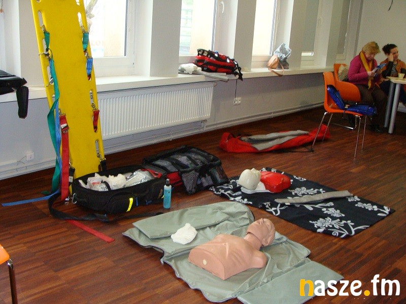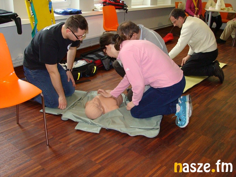 Ratownik medyczny uczył jak poprawnie wykonać resuscytację krążeniowo-oddechową, jak bandażować, zakładać opatrunki czy jak poprawnie ułożyć w pozycji bocznej bezpiecznej.
