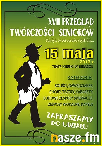 "Tak żyć, by coś zostało z tych dni..." pod tym hasłem także w tym roku w maju na scenie teatralnej będą mieli okazję zaprezentować się seniorzy z regionu. Na zgłoszenia Sieradzkie Centrum Kultury czeka do 15 kwietnia.