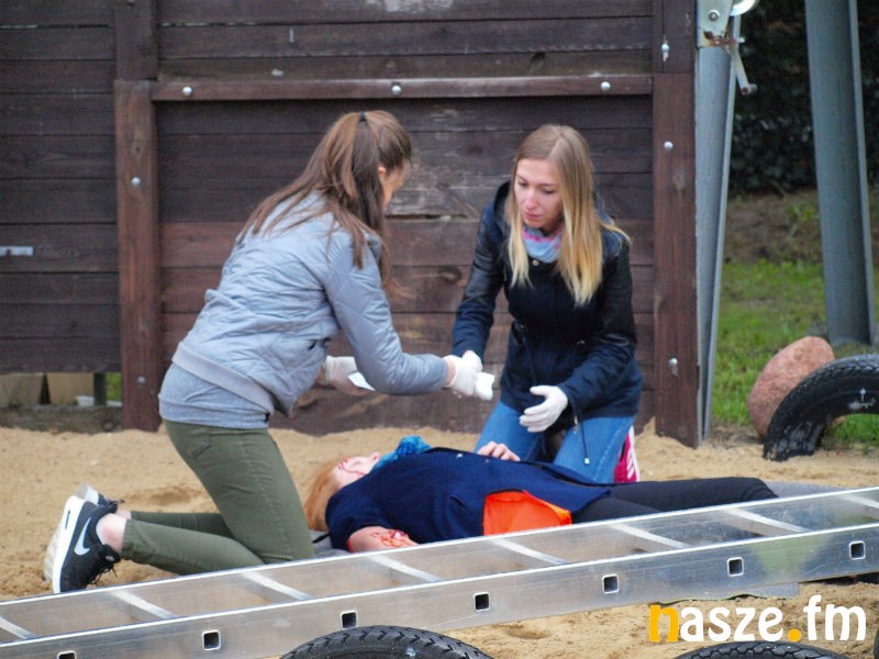 Podczas dzisiejszego podsumowania projektu młodzież zaprezentowała zdobytą wiedzę uczestnicząc w symulacji wypadku, w którym podczas prac remontowych na wysokościach ucierpiały trzy osoby. Uczestnicy otrzymali też pamiątkowe dyplomy.