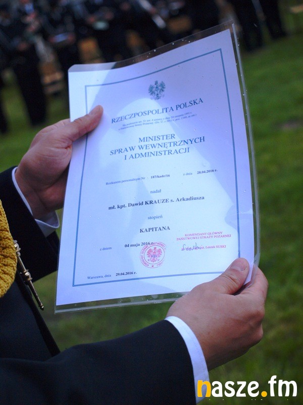 Minister Spraw Wewnętrznych i Administracji rozkazem Nr 182, 187 z dnia 28 kwietnia 2016r. z dniem 04.05.2016r. nadał stopnie oficerskie niżej wymienionym strażakom: