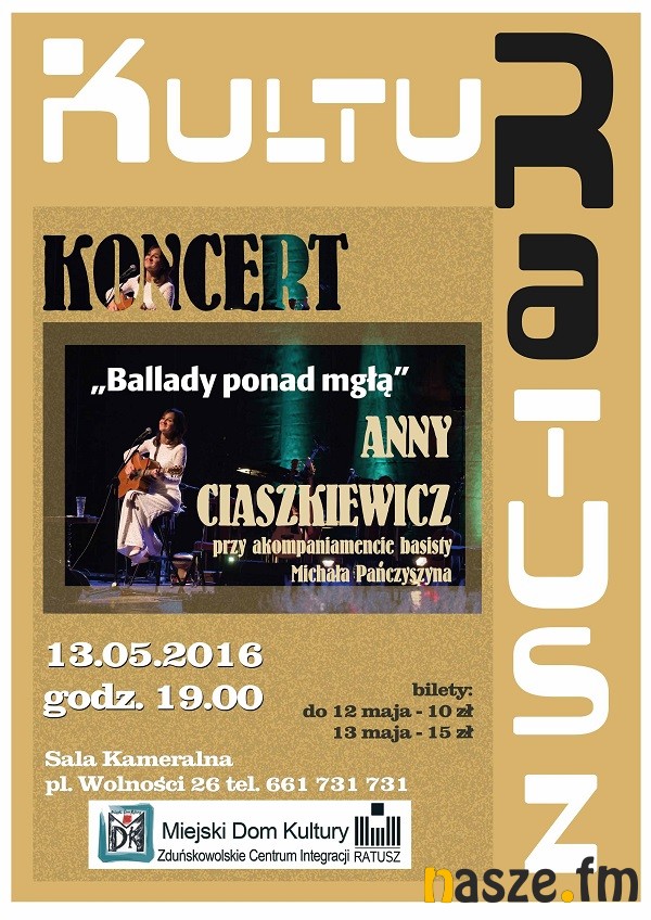 Prosto z wystawy warto udać się na koncert Anny Ciaszkiewicz - Ballady ponad mgłą. Unosząc się nad ziemią przy dźwiękach subtelnego głosu Anny nikt nie zdoła zauważyć, że to piątek trzynastego. Początek koncertu godz. 19:00