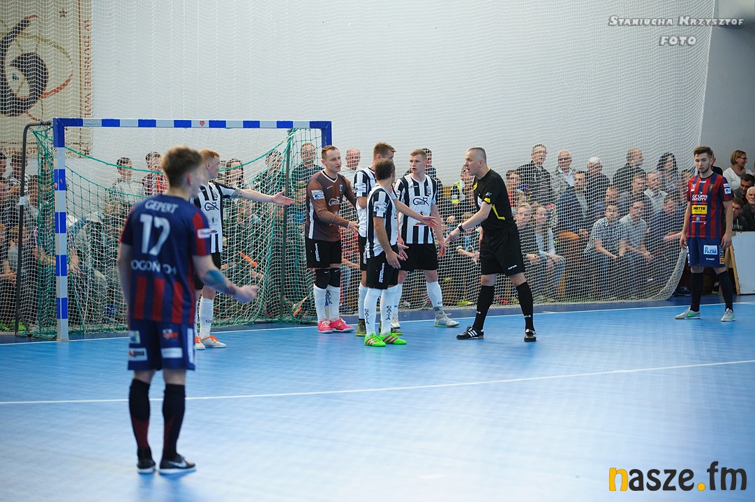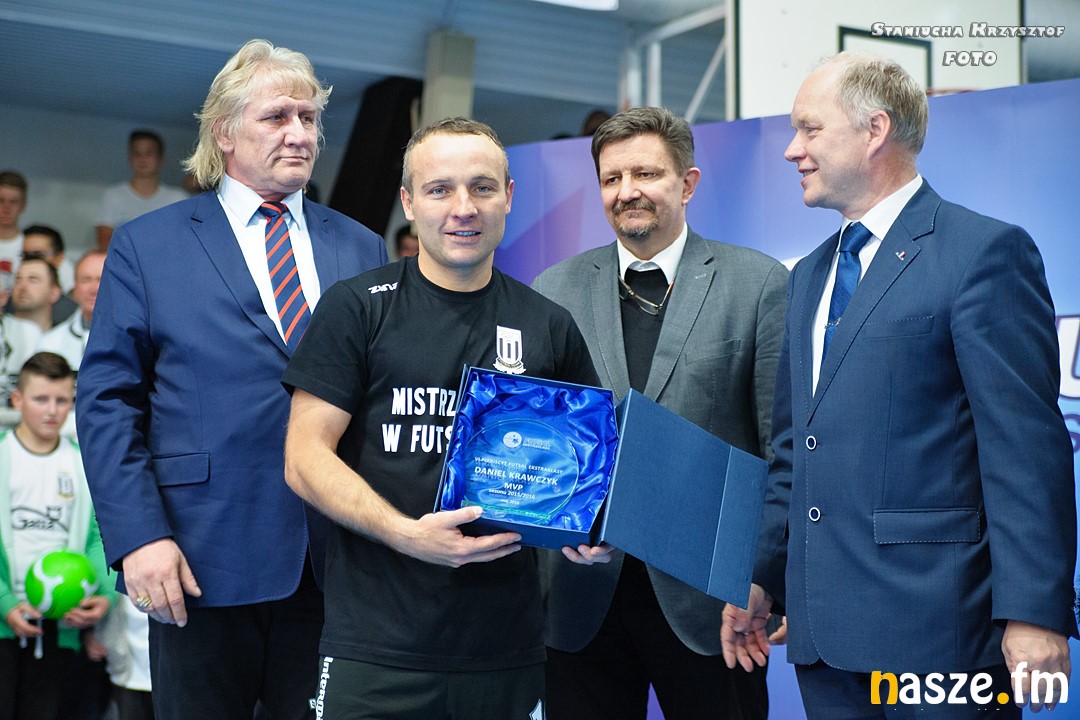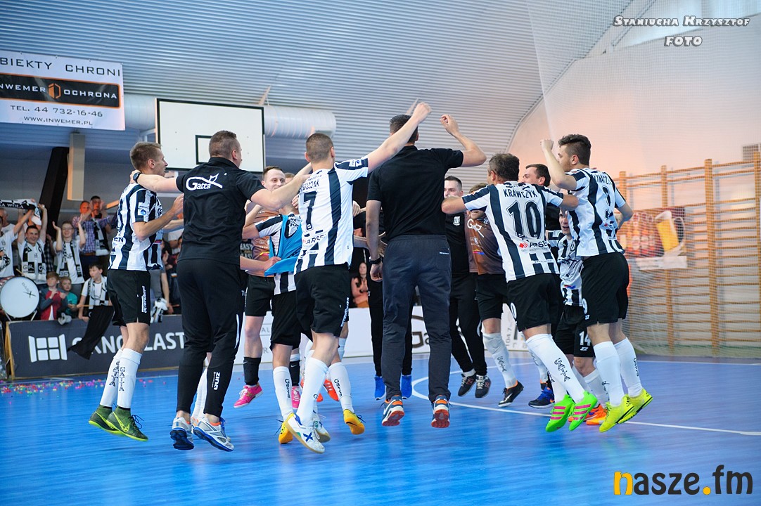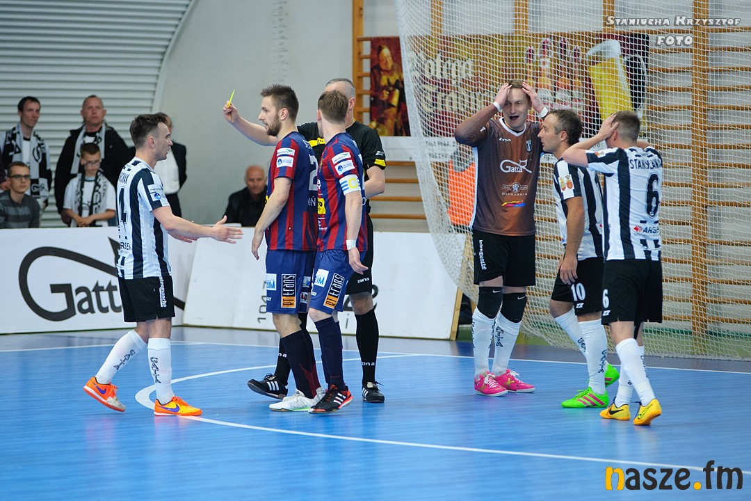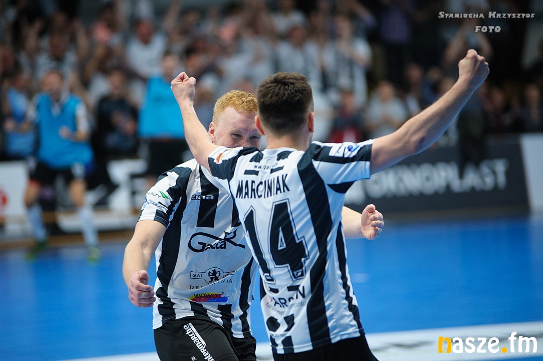 Za chwilę początek spotkania. Zaczynamy od wręczenia pamiątkowych statuetek laureatom plebiscytu Futsal Ekstraklasy. Najlepszym sędzią został wybrany Sebastian Stawicki, a osobowością sezonu Rafał Kędzior z Orange Sport. Nagrody czekają również na piłkarzy, ale ceremonia wręczenia odbędzie się po meczu, jeśli wygra Gatta...