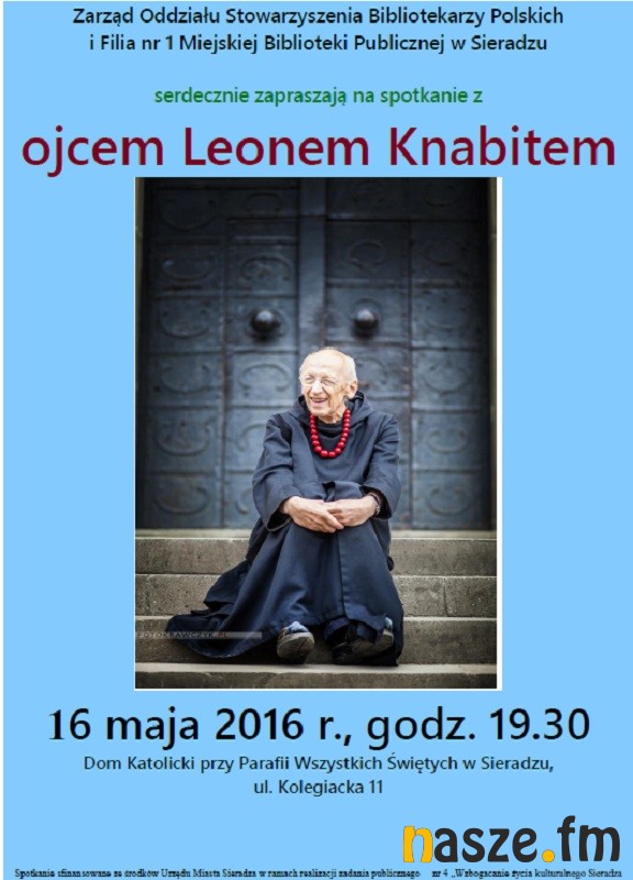Spotkanie z o. Leonem Knabitem pt. "Dusza z ciała wyleciała" już w najbliższy poniedziałek, 16 maja o godz.19.30 w Domu Katolickim przy Parafii Wszystkich Świętych w Sieradzu, ul. Kolegiacka 11. Podczas spotkania będzie możliwość zakupienia książek z dedykacją autora.