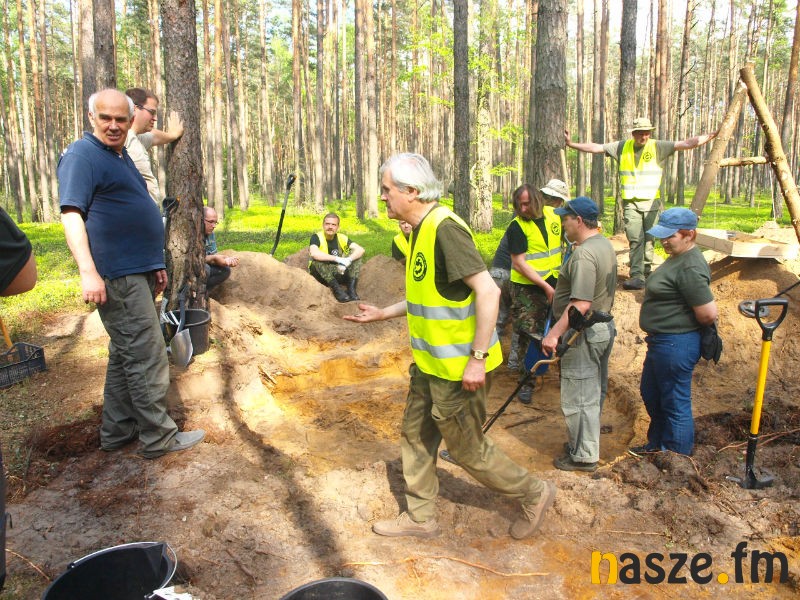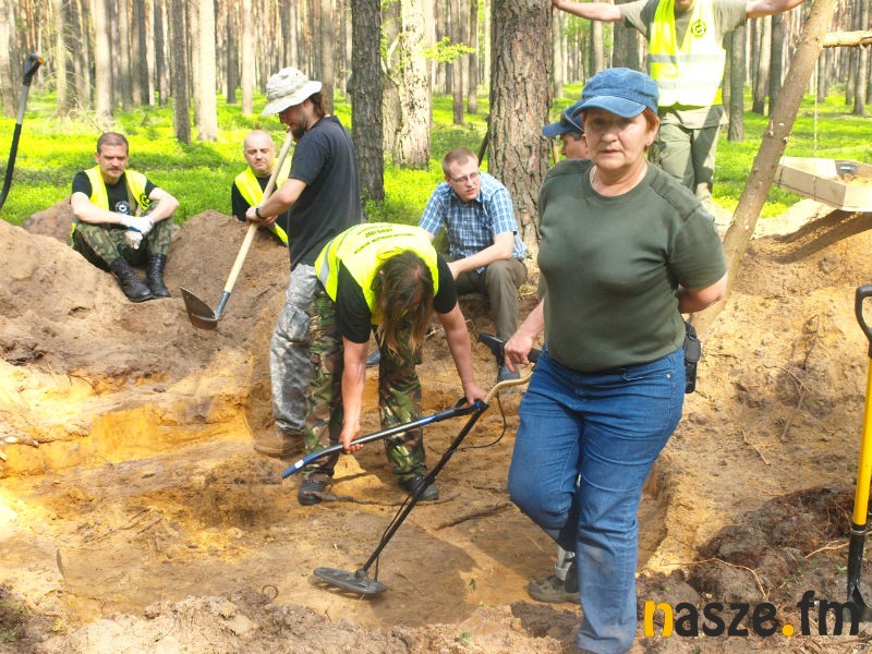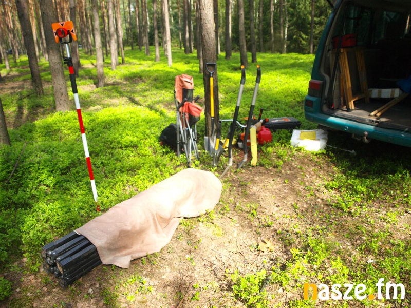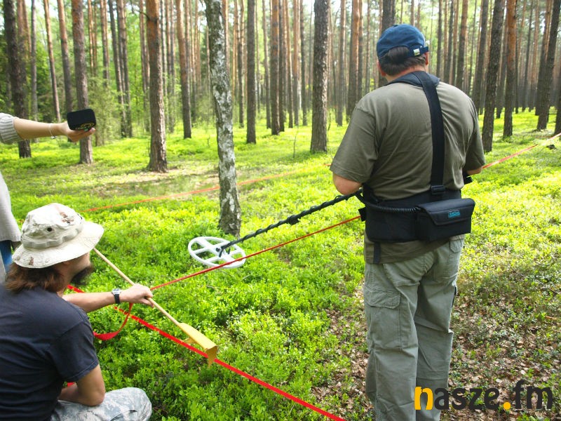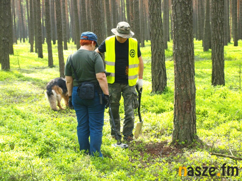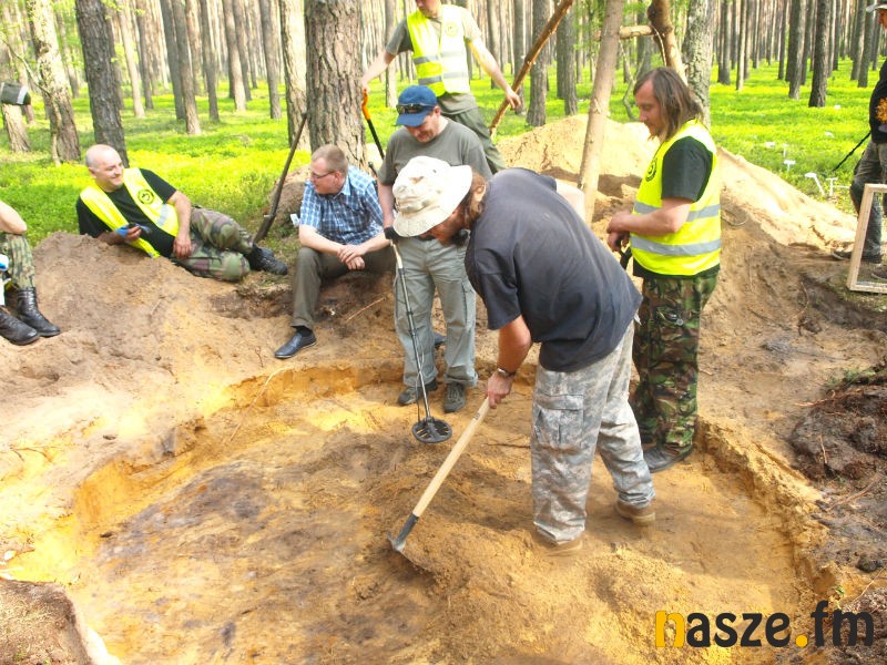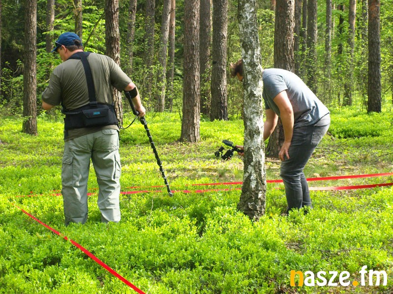 - Zaczęliśmy od wyznaczenia miejsca. Jest to polana wśród osiemdziesięcioletnich sosen, na której nie specjalnie chce coś rosnąć. To jest miejsce, w którym wypaliło się paliwo z samolotu oraz wyciekły oleje. Stąd ta słaba wegetacja. Następnie wyznaczyliśmy pole pomiarowe i przy pomocy mocno zaawansowanego wykrywacza metali sporządziliśmy mapę elektromagnetyczną. W miejscach, gdzie było największe skupisko elementów metalowych zaczęliśmy kopać - wyjaśnia archeolog Adam Golański.