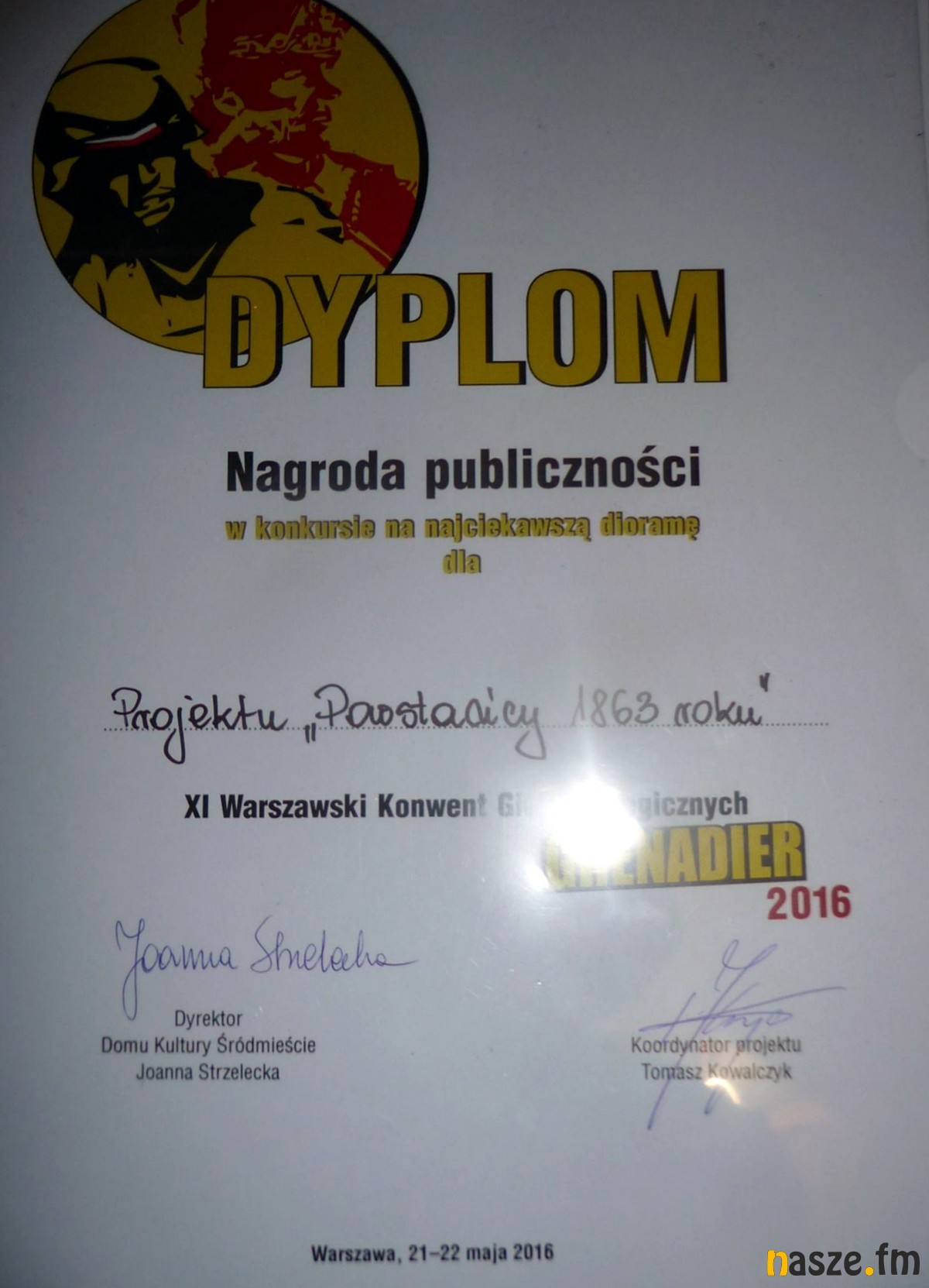 Grupy rekonstrukcyjne „Gloria Victis” z Czastar, „Arma” z Oleśnicy oraz „Chrobry I” ze Zduńskiej Woli zdobyły najwyższe wyróżnienia na tegorocznym Konwencie "GRENADIER" w Warszawskiej Cytadeli za Projekt "Powstańcy 1863 roku".