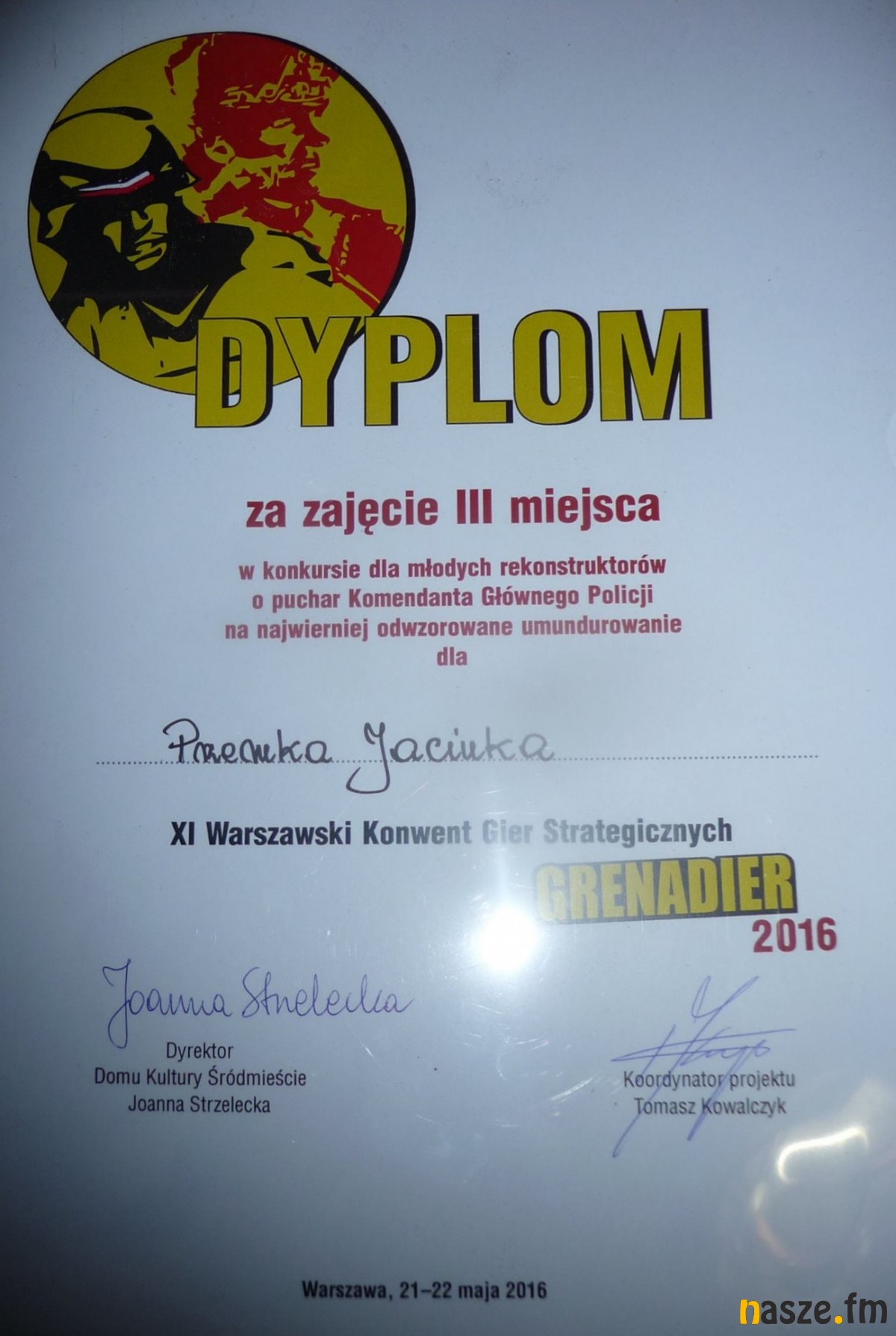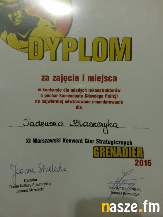 - I miejsce dla Tadeusza Błaszczyka i III miejsce dla Przemka Jaciuka w konkursie dla młodych rekonstruktorów o puchar Komendanta Głównego Policji na najwierniej odwzorowane umundurowanie.
