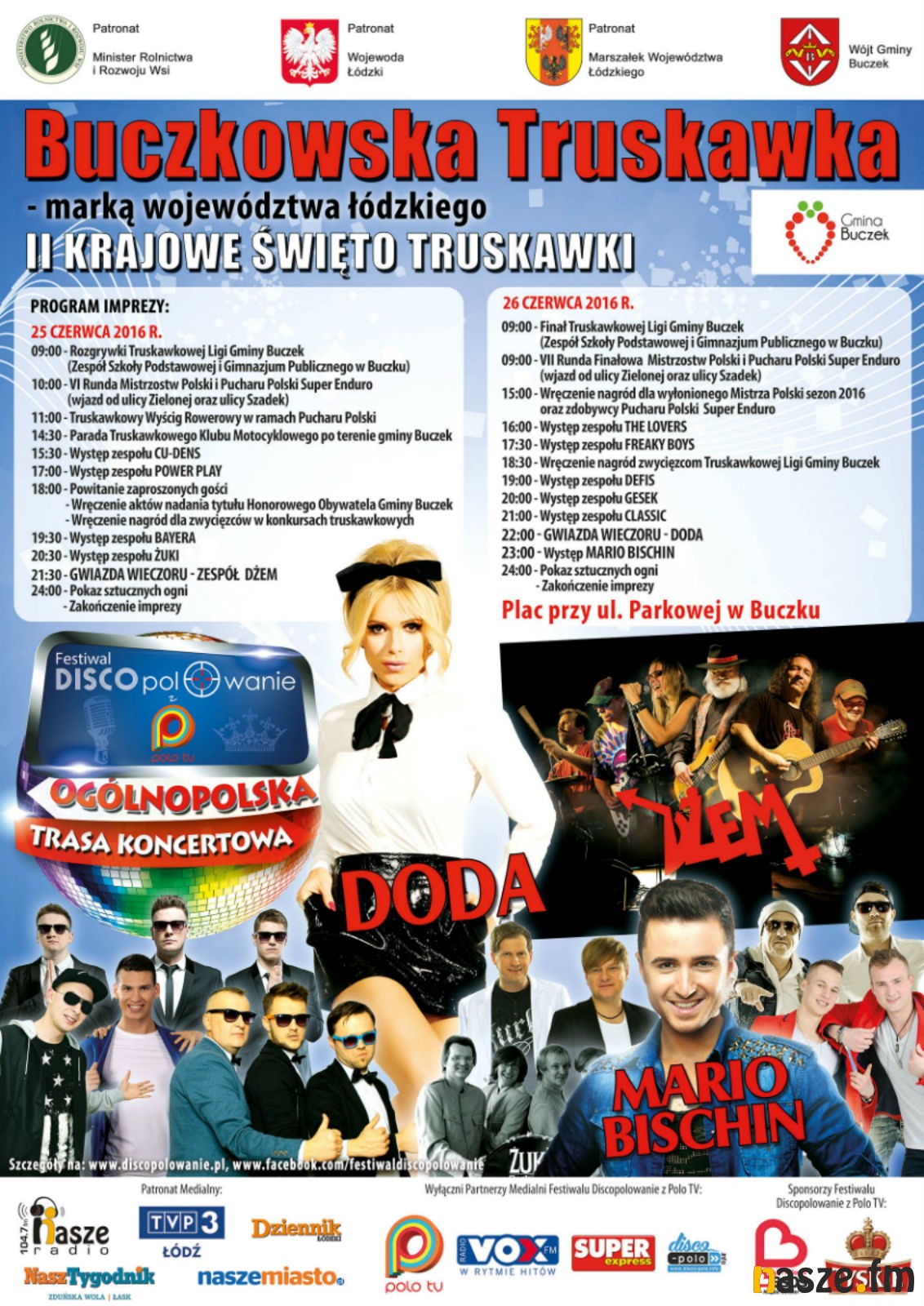 Wielkimi krokami zbliża się II Krajowe Święto Truskawki. Impreza odbędzie się w ostatni weekend czerwca na placu przy ul. Parkowej w Buczku. Święto truskawki co roku przyciąga prawdziwe tłumy. To za sprawą licznych truskawkowych atrakcji oraz wyśmienitych koncertów. Kto wystąpi w tym roku?