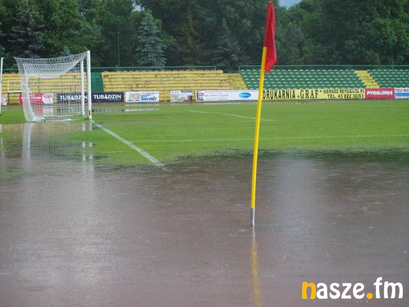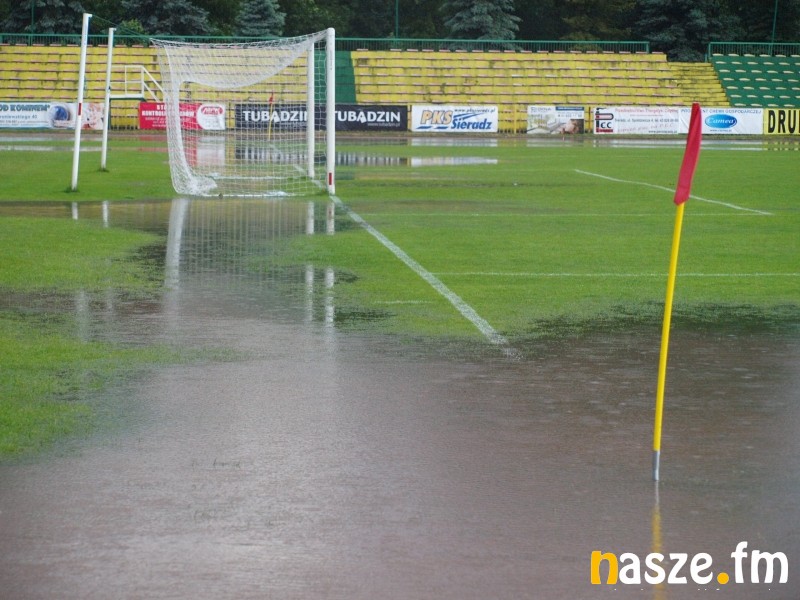Mecz Warty Sieradz z Bronią Radom w ramach 33. kolejki III ligi został przerwany w 42. minucie z powodu intensywnych opadów deszczu. Po kilkudziesięciu minutach ulewy boisko nie nadawało się do gry. Mecz zostanie dokończony przy stanie 0:1.