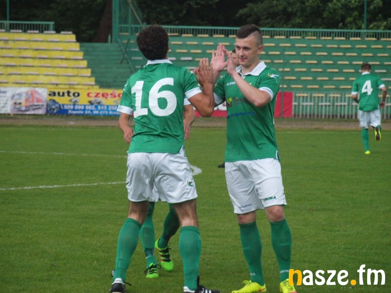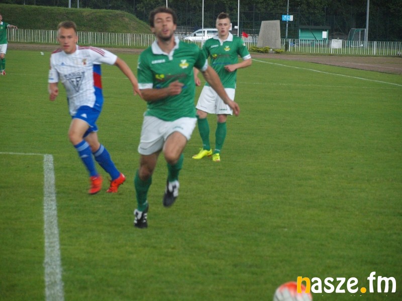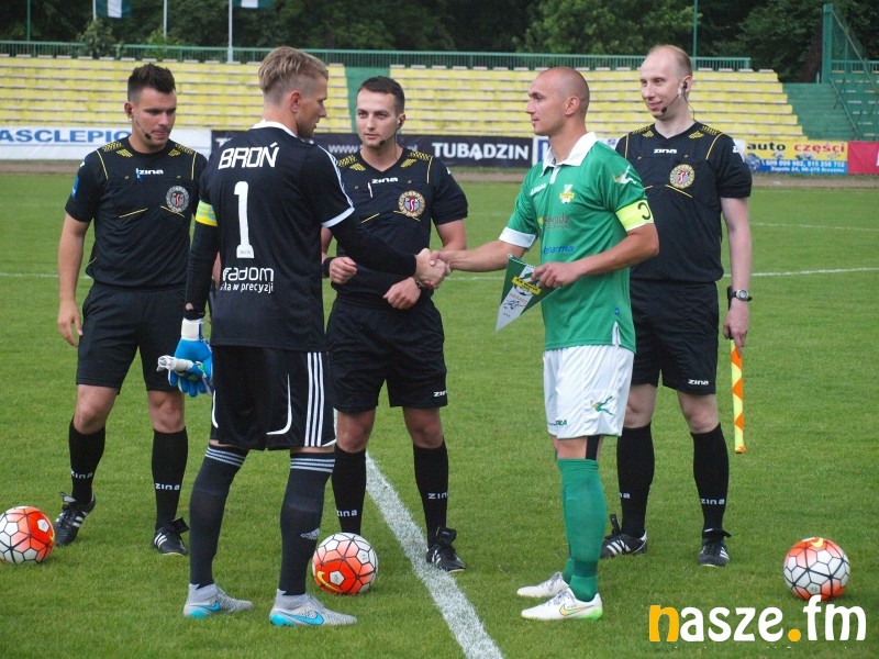 Kilka minut po pierwszym gwizdku nad boiskiem przeszła ulewa. W strugach deszczu piłkarze rozegrali jednak prawie całą pierwszą połowę. Pierwsi gola mogli zdobyć gospodarze, którzy stworzyli sobie co najmniej dwie dogodne sytuacje. W pierwszej Marcin Kobierski posłał piłkę wysoko nad bramką, a w drugiej uderzenie Jarosława Szyca obronił Paweł Młodziński. W 27. minucie goście cieszyli się z prowadzenia, kiedy do odbitej przez Mateusza Wlazłowskiego piłki doskoczył Kamil Czarnecki i skierował ją do siatki. W 36. minucie efektownie zagrał Marcin Kobierski, ale jego strzał z przewrotki trafił w słupek. W 42. minucie sędzia zmuszony był przerwać zawody z powodu zbyt intensywnych opadów. Mecz ma być wznowiony już jutro o 19:00.