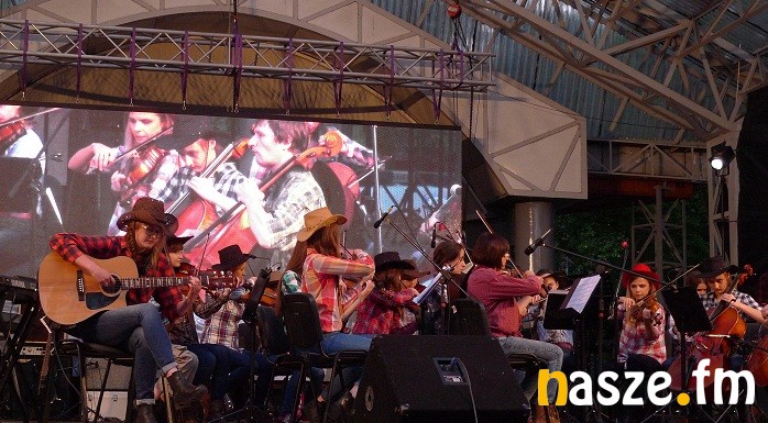 Na pomysł koncertów wpadła 11 lat temu Izabela Rudzka, nauczycielka w tej szkole. Specjalizuje się w muzyce filmowej i znalazła znakomity sposób, żeby dać ludziom możliwość obcowania z dzwiękami kojarzonymi z obrazem. Ten zresztą w formie projekcji fragmentów filmów czy zbliżeń ze sceny był wyświetlany podczas koncertu. Były tematyczne stroje, zróżnicowane gatunki muzyki i składy, urzekająca prowadząca, licznie zgromadzona publiczność,dopisała też pogoda. To wszystko złożyło się na wspaniały muzyczny wieczór.