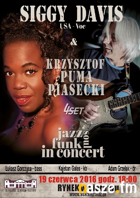 Siggy Davis, obdarzona potężnym głosem wokalistka pochodząca z Nowego Jorku, przez lata występowała na deskach teatrów na Brodway'u. Tym razem wystąpi na sieradzkim Rynku z zespołem 4SET, którego liderem jest znakomity gitarzysta Krzysztof Puma Piasecki. Koncert odbędzie się w niedzielę 19 czerwca, początek o godz. 18:00.