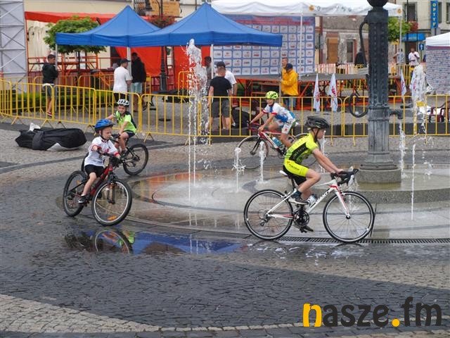 Tradycyjnie przed finiszem kolarzy, swoich sił na rowerach próbują najmłodsi adepci dwóch kółek. Niestety, ze względów bezpieczeństwa organizatorzy odwołali dzisiejsze zawody w Sieradzu. Nawierzchnia z kostki w strugach deszczu okazała się dla młodych zawodników zbyt niebezpieczna.