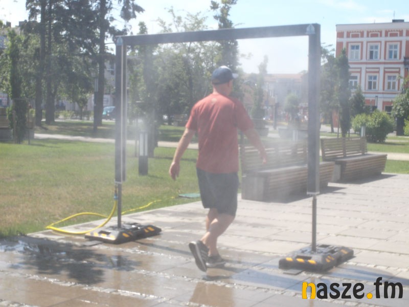 Początek wakacji przywitał nas iście upalną pogodą. Na Placu Wolności przy Zduńskowolskim Centrum Integracji – Ratusz pojawiła się specjalna zraszająca bramka. Chętnych do ochłody nie brakuje.