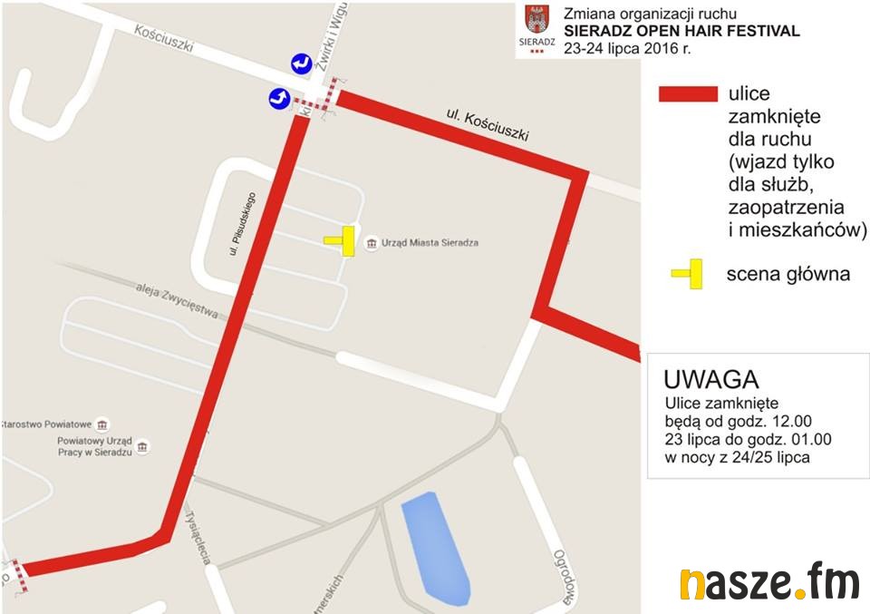 W związku z organizacją Festiwalu Open Hair w najbliższy weekend w centrum Sieradza wprowadzone zostaną zmiany w organizacji ruchu.