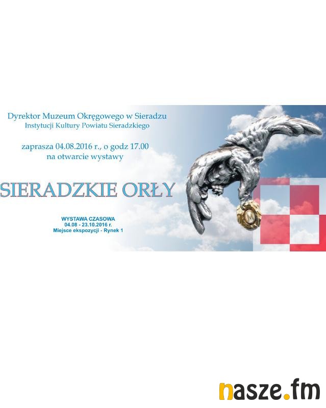 Sieradzkie Muzeum Okręgowe niebawem zaprezentuje kolejną ciekawą wystawę. Mowa o ekspozycji " Sieradzkie orły". Uroczyste otwarcie odbędzie się 4 sierpnia o godzinie 17 w Muzeum Okręgowym w Sieradzu. Wystawa będzie dostępna do 23 października.