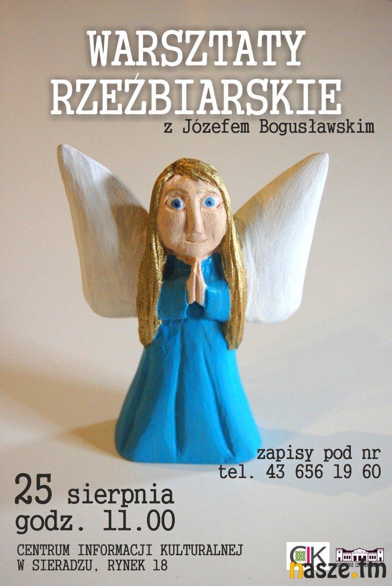 Zajęcia poprowadzi znany sieradzki twórca ludowy – Józef Bogusławski. Uczestnicy warsztatów będą mogli nauczyć się podstaw sztuki rzeźbiarskiej. Stworzą własne figurki w kostkach mydła. Warsztaty odbędą się 25 sierpnia, początek o godzinie 11. Zajęcia są bezpłatne, wszystkie narzędzia i materiały potrzebne do warsztatów zapewnia organizator.