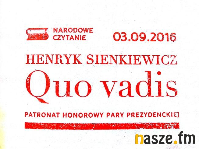 - Gorąco zachęcam wszystkich Państwa do wspólnego czytania „Quo vadis” 3 września 2016 roku. Chciałbym, aby po raz kolejny Narodowe Czytanie było dla nas wszystkich czasem inspirujących refleksji, przynoszącym radość z kontaktu z prawdziwie wielką literaturą – napisał w liście inaugurującym akcję Prezydent RP Andrzej Duda.