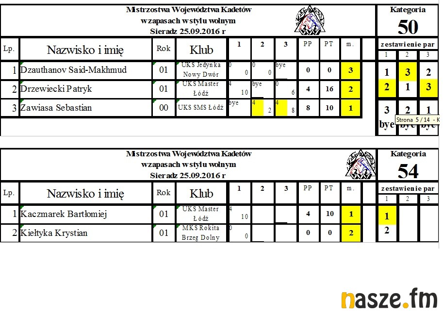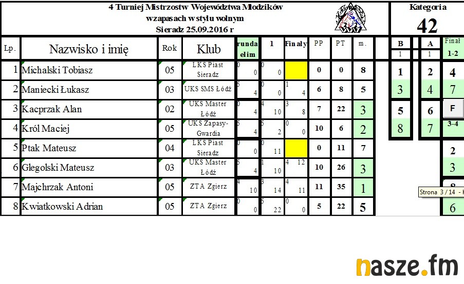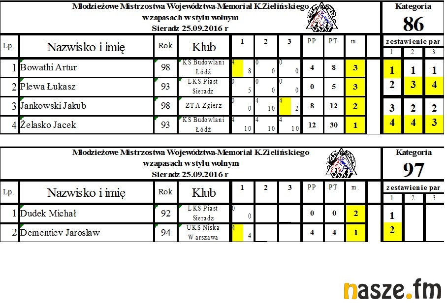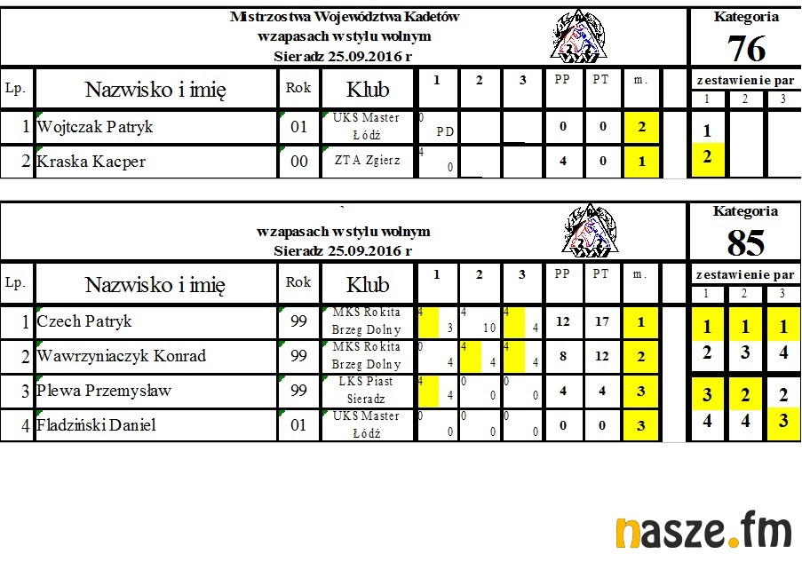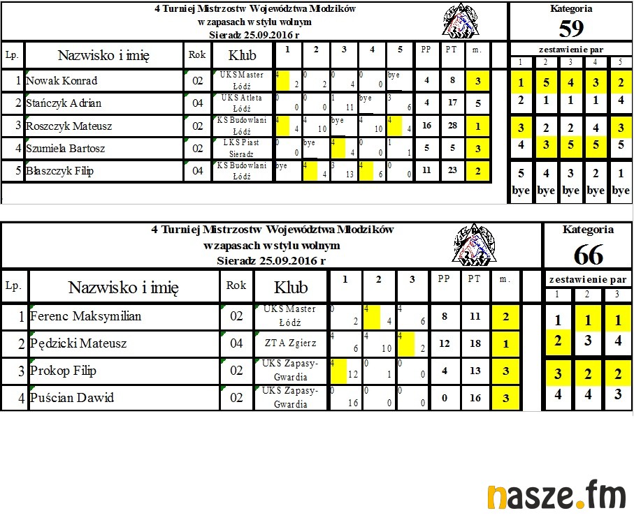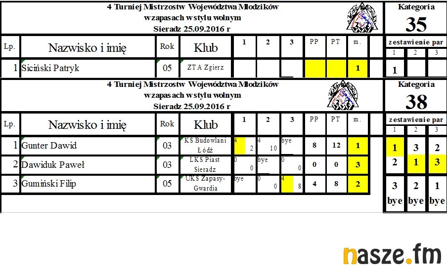 Nie mogło zabraknąć zapaśników z Brzegu Dolnego, czyli z klubu zaprzyjaźnionego z LKS Piast Sieradz, poza tym na zawody przyjechali zawodnicy z Mazowsza i woj. łódzkiego. - Jest ciężko, bo organizacja takich zawodów spada praktycznie na dwie osoby, poza mną jest to oczywiście prezes LKS Piast - Maciej Sulgan - mówi Zbigniew Maryan, kiedyś świetny zapaśnik, a obecnie trener Piasta. - Cieszymy się bardzo, że pojawili się dziś rodzice naszych najmłodszych zawodników, ich zaangażowanie sprawi być może, że ta nowa grupa będzie się rozwijać. Początki są oczywiście trudne, dziś nasi najmłodsi wychowankowie walczą ze starszymi od siebie, ale gdzieś muszą się uczyć - dodaje Maryan. Jednym z widzów obserwujących dzisiejszy turniej był Ryszard Klimas, były zapaśnik, później trener, który na Igrzyskach Olimpijskich w Barcelonie był asystentem trenerów kadry zarówno w stylu wolnym, jak i klasycznym. Obecnie działa w Polskim Związku Zapaśniczym, jest także cenionym trenerem w Sankt Petersburgu w Rosji. Ostatnio dwie podopieczne Klimasa wywalczyły medale igrzysk w Rio. - Pamiętam, gdy sam walczyłem w tym turnieju, to zawsze była wizytówka sieradzkich zapasów, cieszę się, że impreza wciąż się odbywa i mam nadzieję, że w przyszłym roku na jubileusz klubu uda się zorganizować te zawody z większym rozmachem, może uda się zaprosić zapaśników w Sankt Petersburga? - dodaje Klimas.