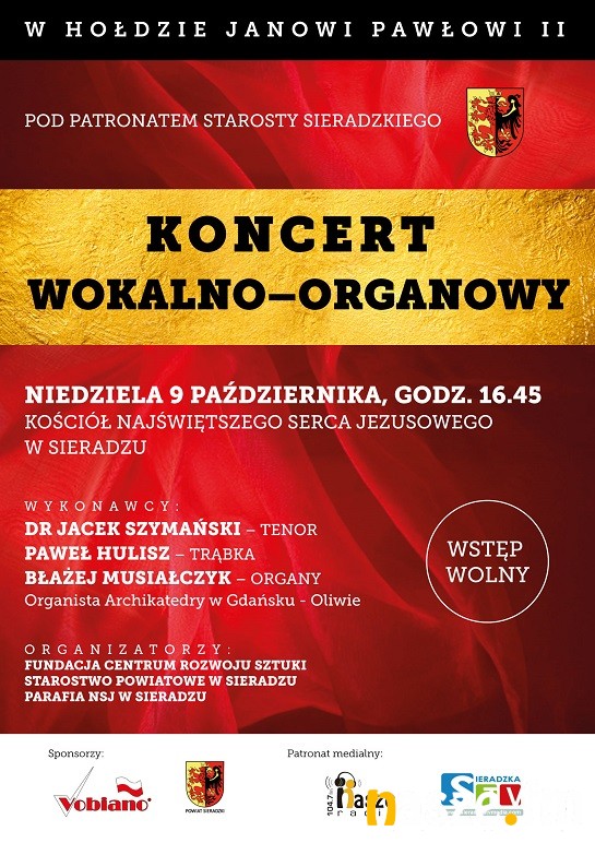Organizatorem koncertu jest pochodzący z Sadokrzyc Błażej Musiałczyk, organista Archikatedry w Gdańsku-Oliwie. Na październikowy koncert, dedykowany św. Janowi Pawłowi II, artysta zaprosił tenora Jacka Szymańskiego i trębacza Pawła Hulisza. Koncert odbędzie się w niedzielę 9 października w kościele Najświętszego Serca Jezusowego ( al. Grunwaldzka 8), początek o godz. 16:45 wstęp wolny.