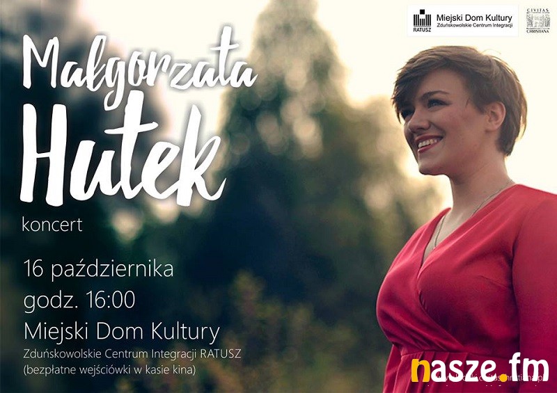 Koncert Małgorzaty Hutek w najbliższą niedzielę, 16 października w Centrum Integracji Ratusz. Początek o godz. 16:00. Darmowe wejściówki są do odbioru w kasie ratusza.