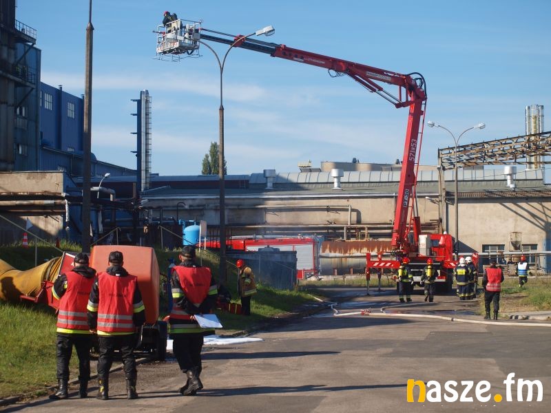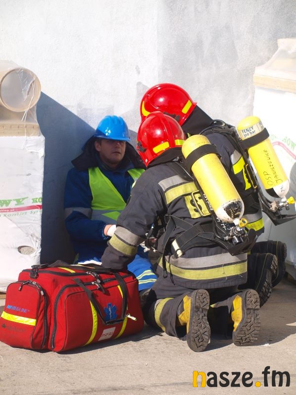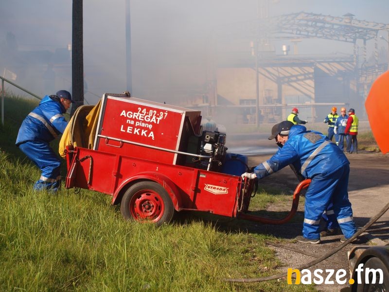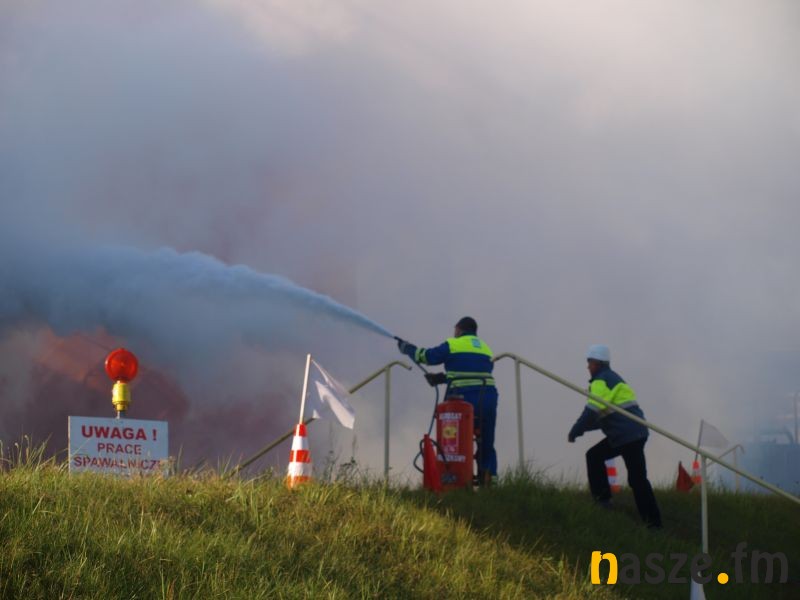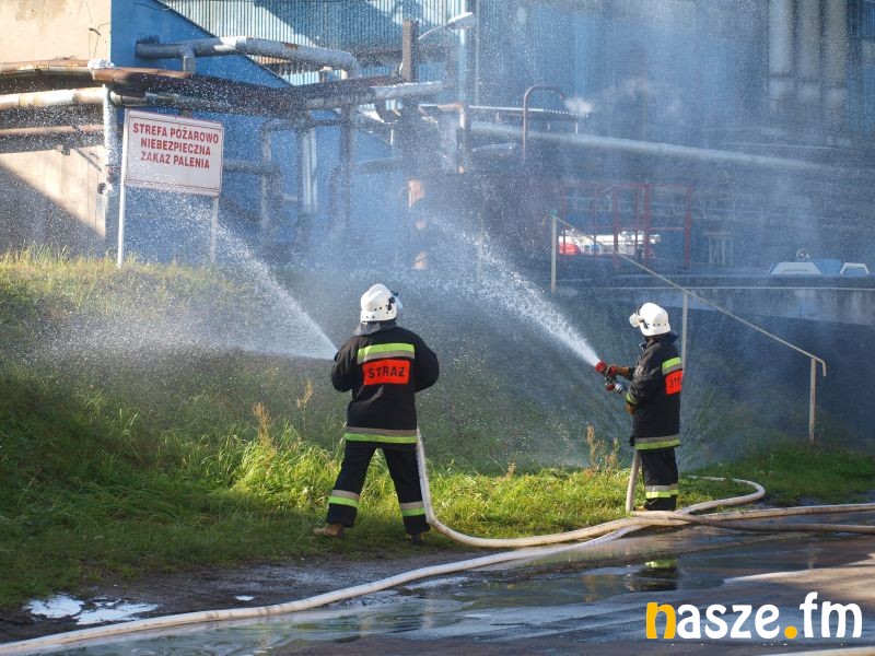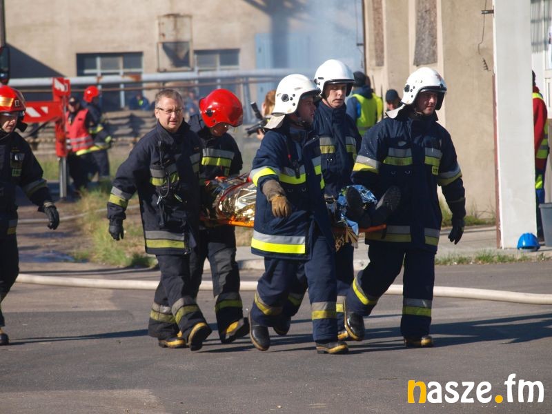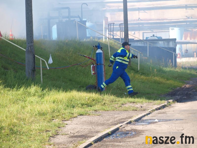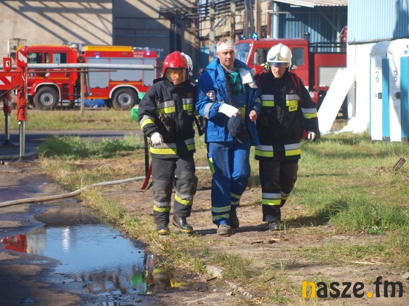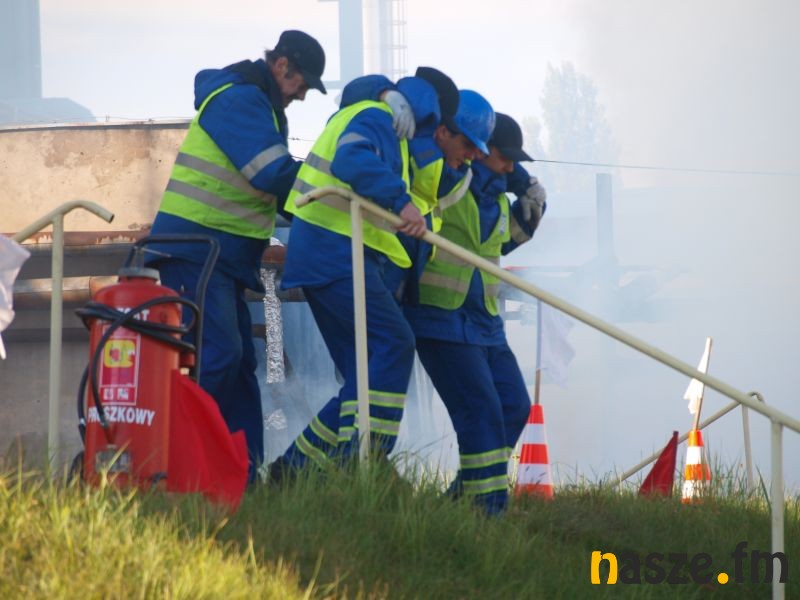 - Głównym założeniem naszych ćwiczeń był wyciek asfaltu z jednego ze zbiorników. Podczas wycieku ten asfalt zapalił się. Mieliśmy dwie osoby poszkodowane. Musieliśmy udzielić pierwszej pomocy, zatamować wyciek i ugasić palący się asfalt. Dodatkowo pojawiło się takie utrudnienie. W pobliskim budynku nastąpił wybuch butli z acetylenem. Podczas prac spawalniczych zapaliły się węże przy tych butlach. Tam mieliśmy jedną osobę poszkodowaną. Dwóch pracowników zgubiło się i musieliśmy je odnaleźć i żeby było jeszcze ciekawiej, to podczas tego drugiego epizodu jednego z pracowników przygniótł worek z posypką do papy. Myślę, że ćwiczenia bardzo ciekawe - wyjaśnia Grzegorz Styczyński, który dowodził akcją.