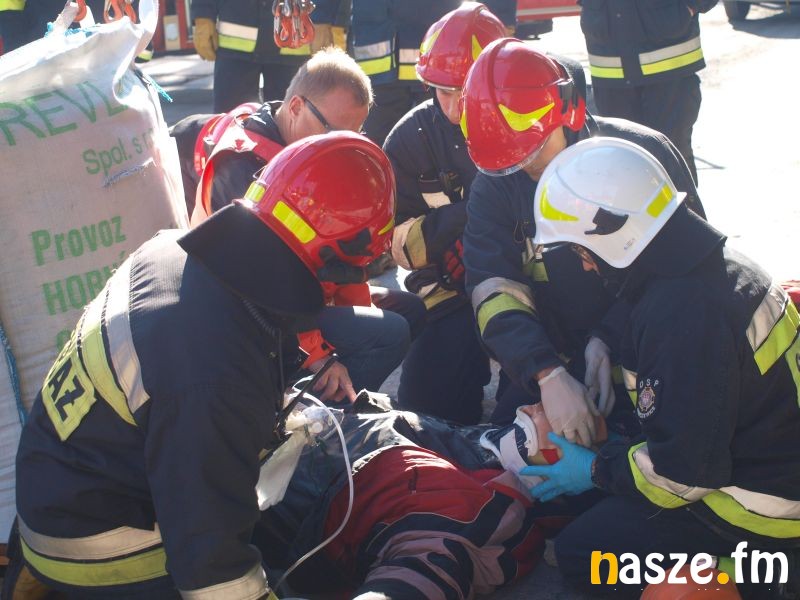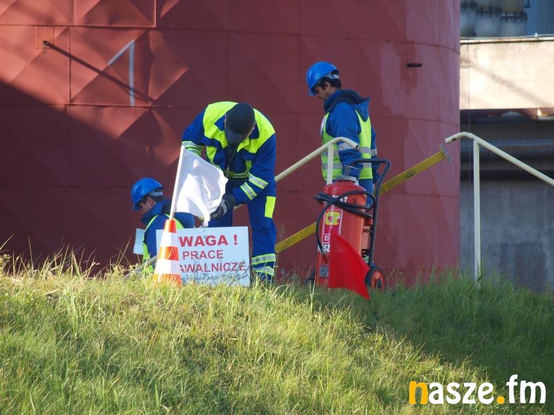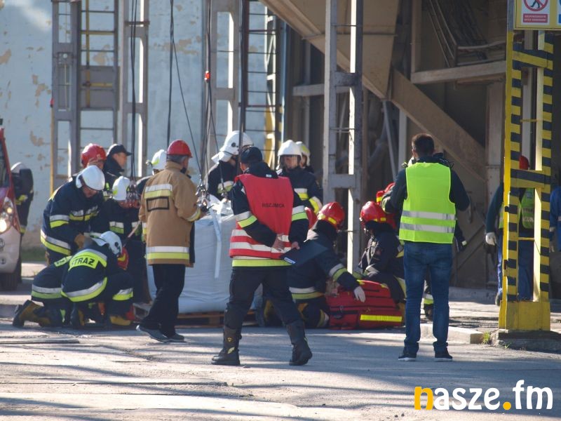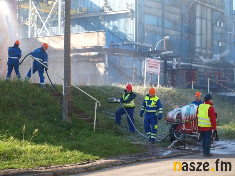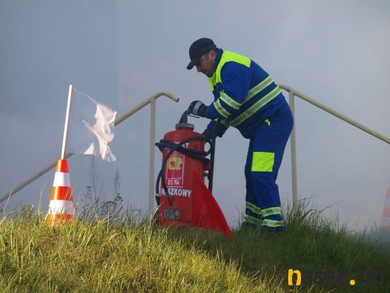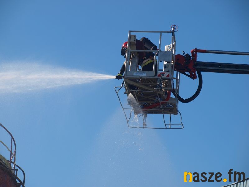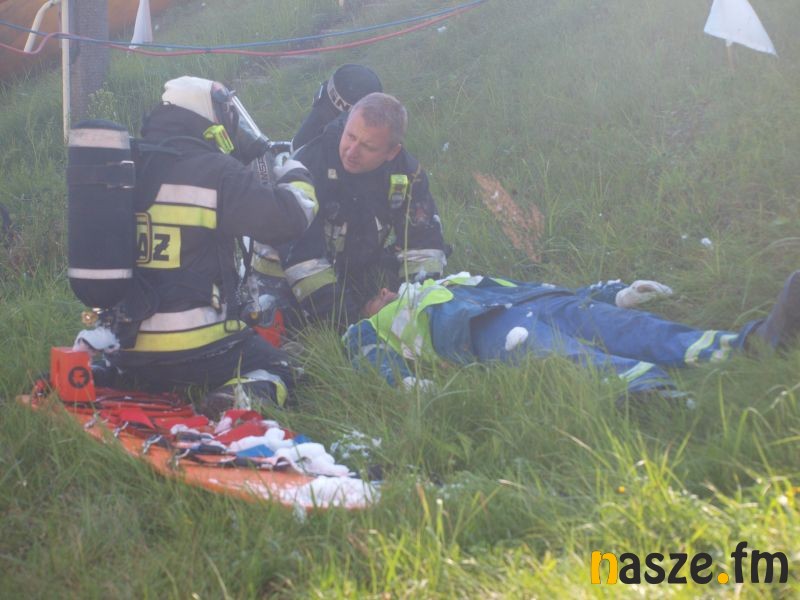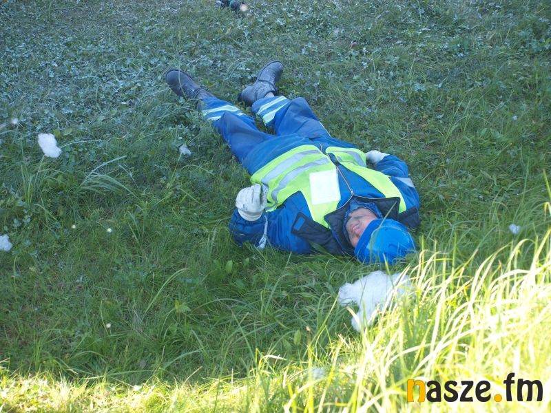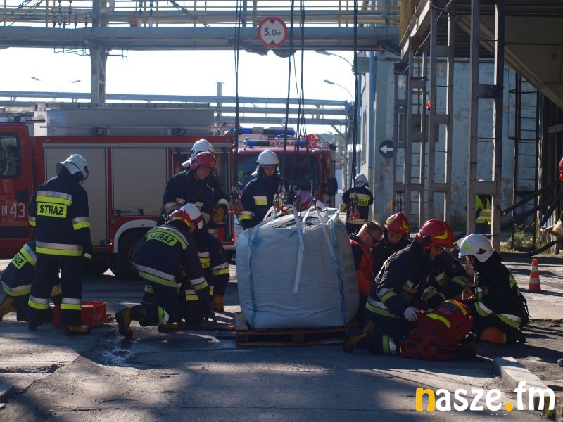 - Głównym założeniem naszych ćwiczeń był wyciek asfaltu z jednego ze zbiorników. Podczas wycieku ten asfalt zapalił się. Mieliśmy dwie osoby poszkodowane. Musieliśmy udzielić pierwszej pomocy, zatamować wyciek i ugasić palący się asfalt. Dodatkowo pojawiło się takie utrudnienie. W pobliskim budynku nastąpił wybuch butli z acetylenem. Podczas prac spawalniczych zapaliły się węże przy tych butlach. Tam mieliśmy jedną osobę poszkodowaną. Dwóch pracowników zgubiło się i musieliśmy je odnaleźć i żeby było jeszcze ciekawiej, to podczas tego drugiego epizodu jednego z pracowników przygniótł worek z posypką do papy. Myślę, że ćwiczenia bardzo ciekawe - wyjaśnia Grzegorz Styczyński, który dowodził akcją.