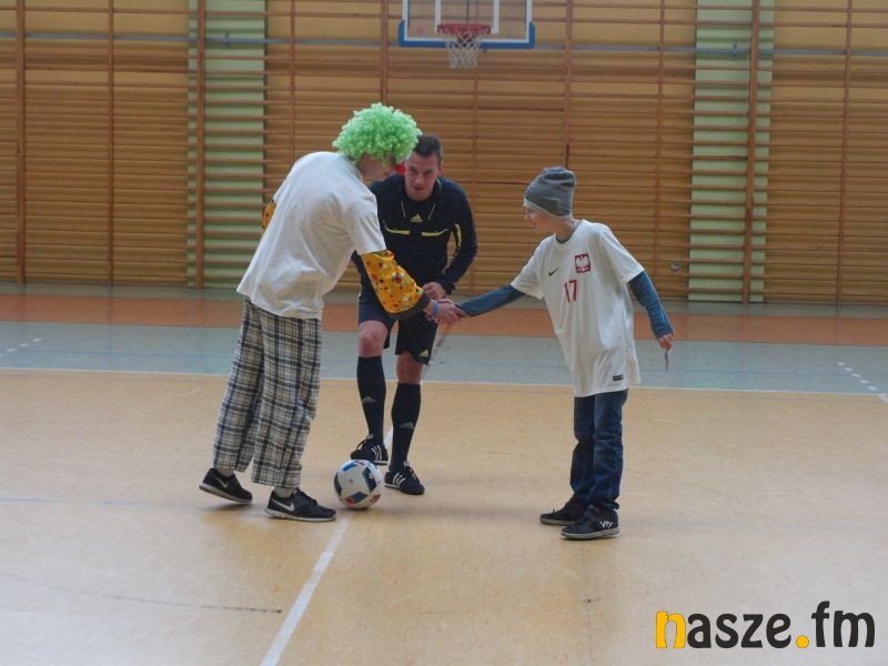 W hali sportowej Zespołu Szkół Katolickich w sobotę odbył się mecz piłki nożnej. Po jednej stronie stanęli wolontariusze Fundacji Dr Clown. Vis a vis Adrian w koszulce Bartosza Kapustki i jego koledzy.