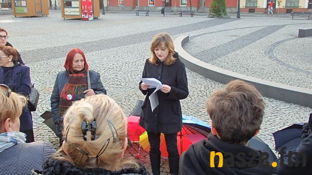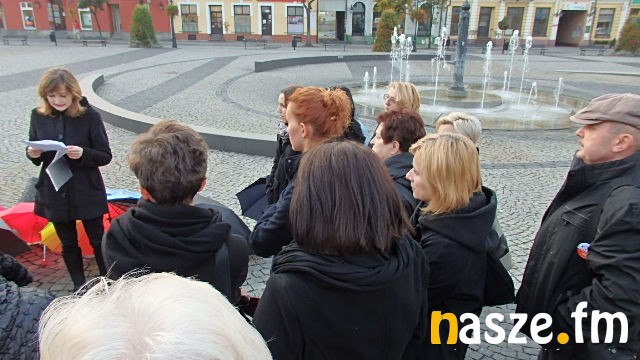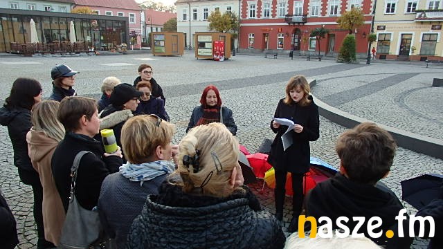 Na sieradzkim rynku zebrało się kilkanaście osób ubranych na czarno, z parasolami w rękach.
