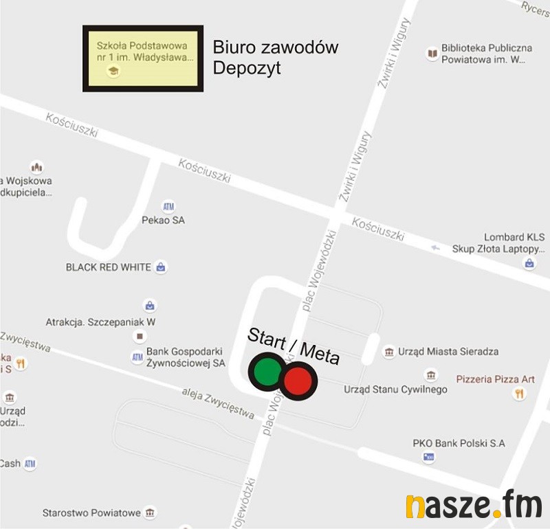 Biuro zawodów, depozyt i sala expo, znajdować się będą w Szkole Podstawowej nr 1 w Sieradzu na ulicy Kościuszki. Rozgrzewka planowana jest na Placu Wojewódzkim.