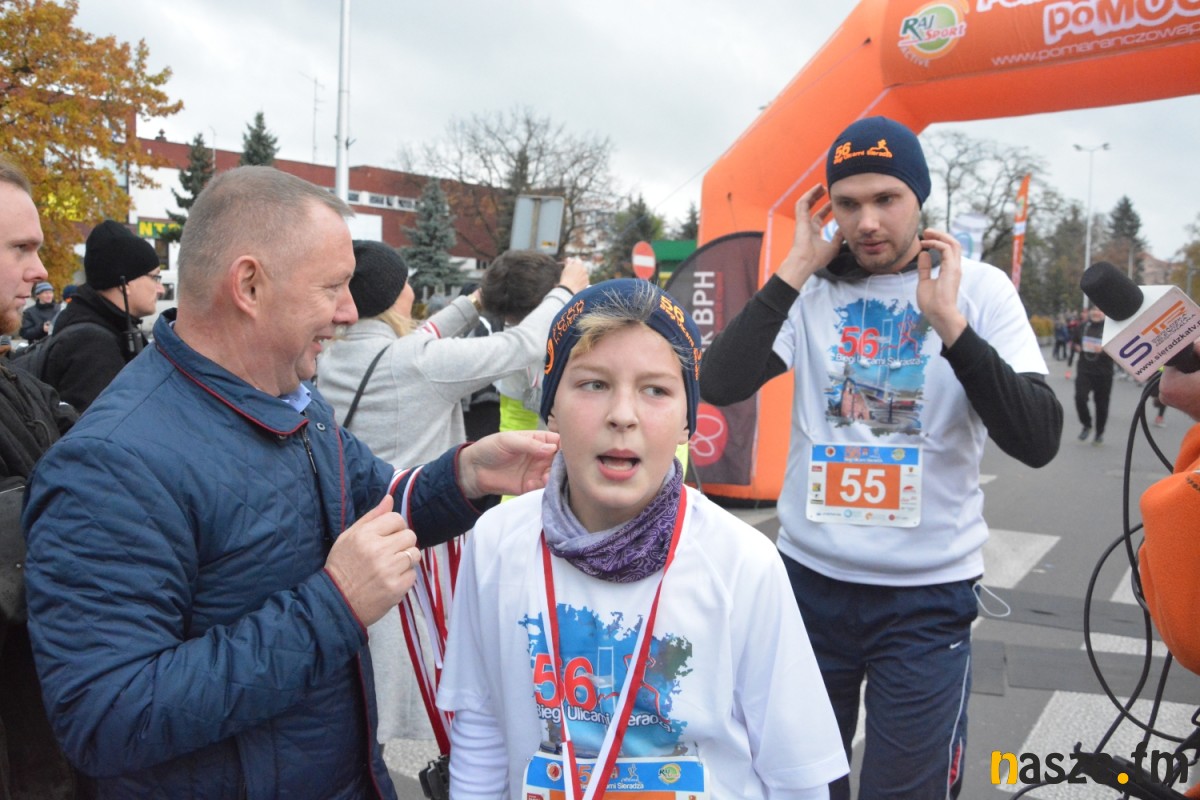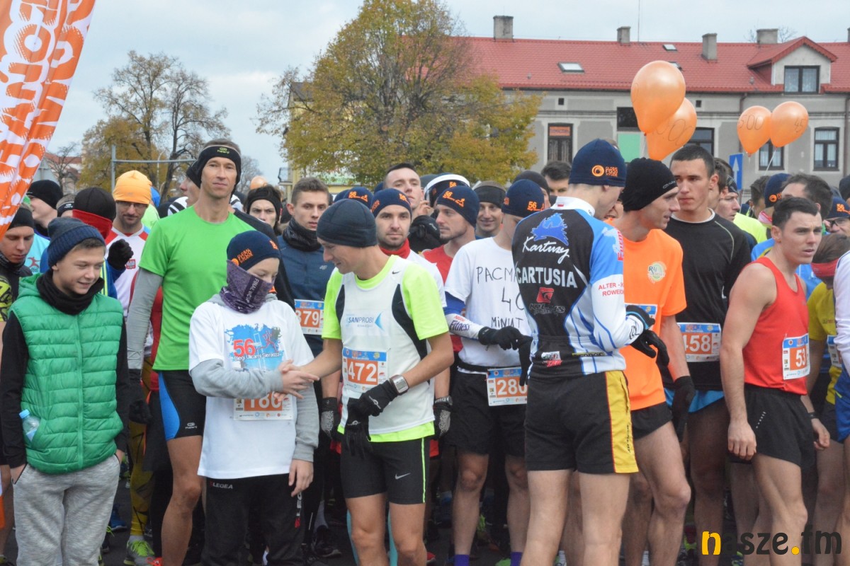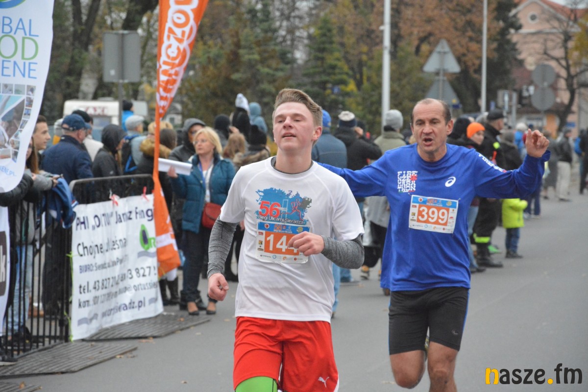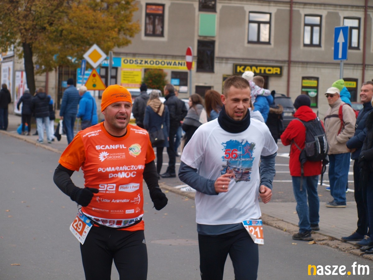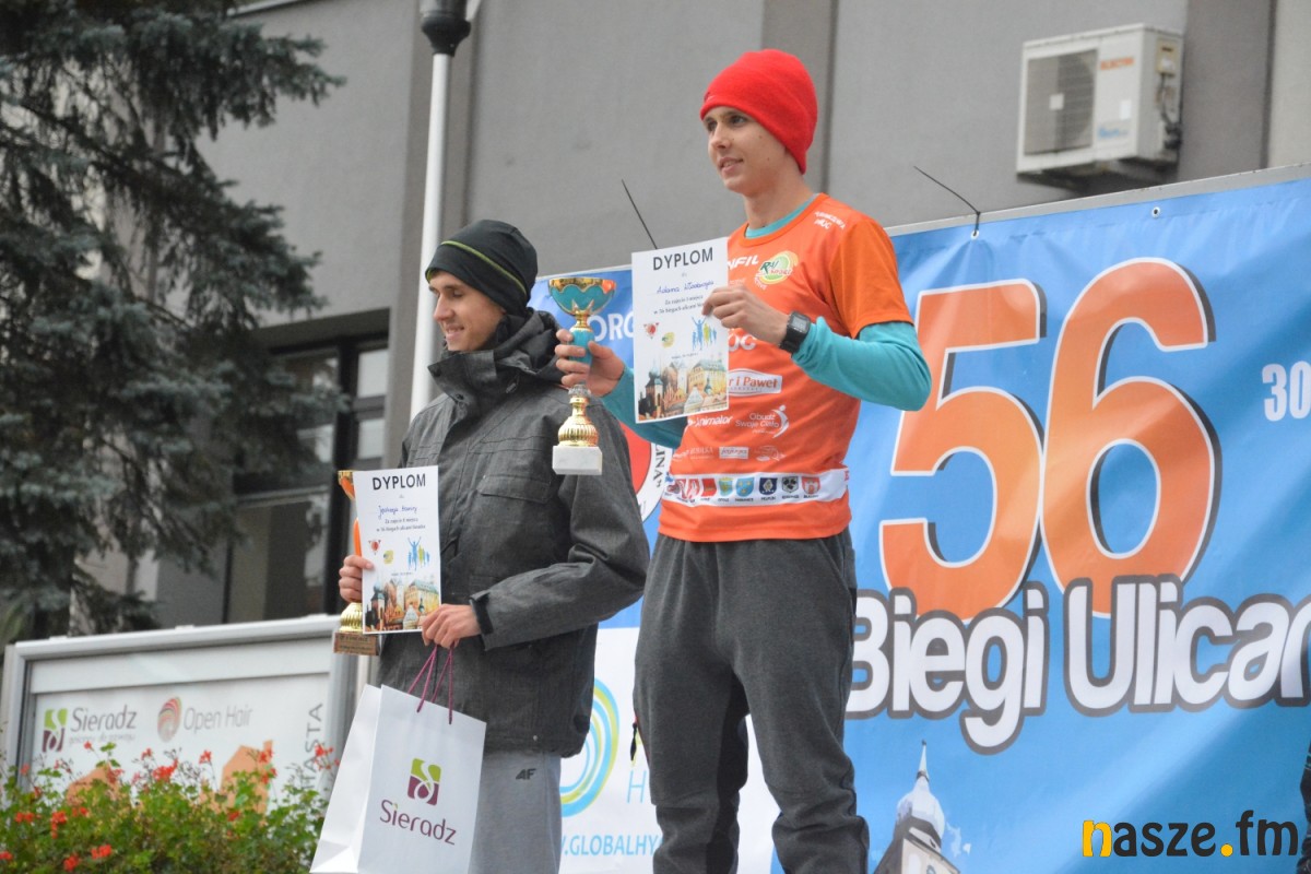 - Praktycznie do 9 kilometra biegliśmy razem, na finiszu młodzież okazała się szybsza - powiedział na mecie Kozłowski, który odebrał nagrodę dla najlepszego sieradzanina biegów. O atmosferze towarzyszącej biegowi niech świadczy wypowiedź zwycięzcy - Znamy się z Arturem bardzo dobrze, na trasie opowiadał nam o swoim mieście, mówił, jakie miejsca mijamy - mówił na mecie Tomasz Osmulski. Najszybszą kobietą na trasie była Natalia Grzegorczyk, która swoje największe sukcesy odnosi w biegach górskich. Bieg główny poprzedziły tradycyjnie wyścigi dzieci i młodzieży w kategoriach szkół podstawowych, gimnazjalnych i ponadgimnazjalnych. Był także bieg rodzinny na symbolicznym dystansie jednego kilometra. Kilku uczestników potraktowało go, jak rozgrzewkę przed biegiem głównym, towarzysząc np. swoim dzieciom. Bieg na 10 km odbywał się na dwóch pętlach po 5 km. Co ważne, trasa posiadała atest PZLA, więc można się pokusić o pobicie rekordu życiowego i choć takowych dziś nie brakowało, wcale nie było o to łatwo. Na trasie było kilka podbiegów, co z pewnością stanowiło spore utrudnienie. Ważne jednak, że większość kończyła zawody w doskonałym humorze, a w końcu o to chodzi w biegach masowych. Warto dodać, że na starcie stanęła rekordowa liczba ok. 500 uczestników. Na wszystkich czekały również niespodzianki już za metą. Przy odrobinie szczęścia można było wygrać rower lub markowe koszulki sportowe, w pakiecie startowym znajdowała się m.in.koszulka techniczna z logo imprezy, piękny pamiątkowy medal, czy bon żywieniowy. 56. Biegi Ulicami Sieradza zorganizowały kluby: Żeglina i Raj Sport Active, przy współudziale Urzędu Miasta Sieradza.