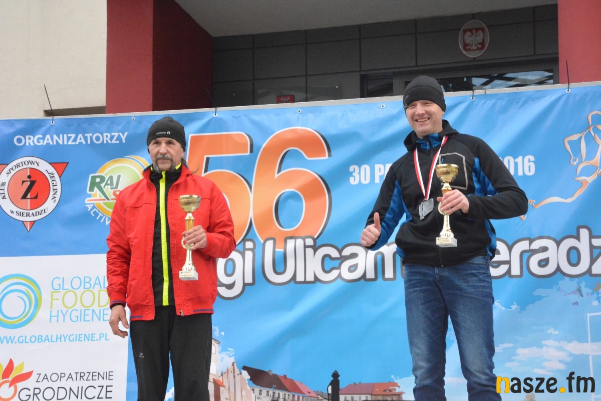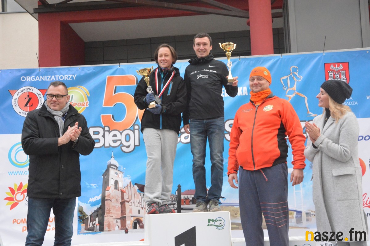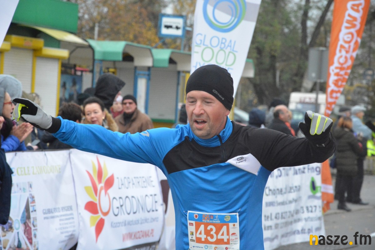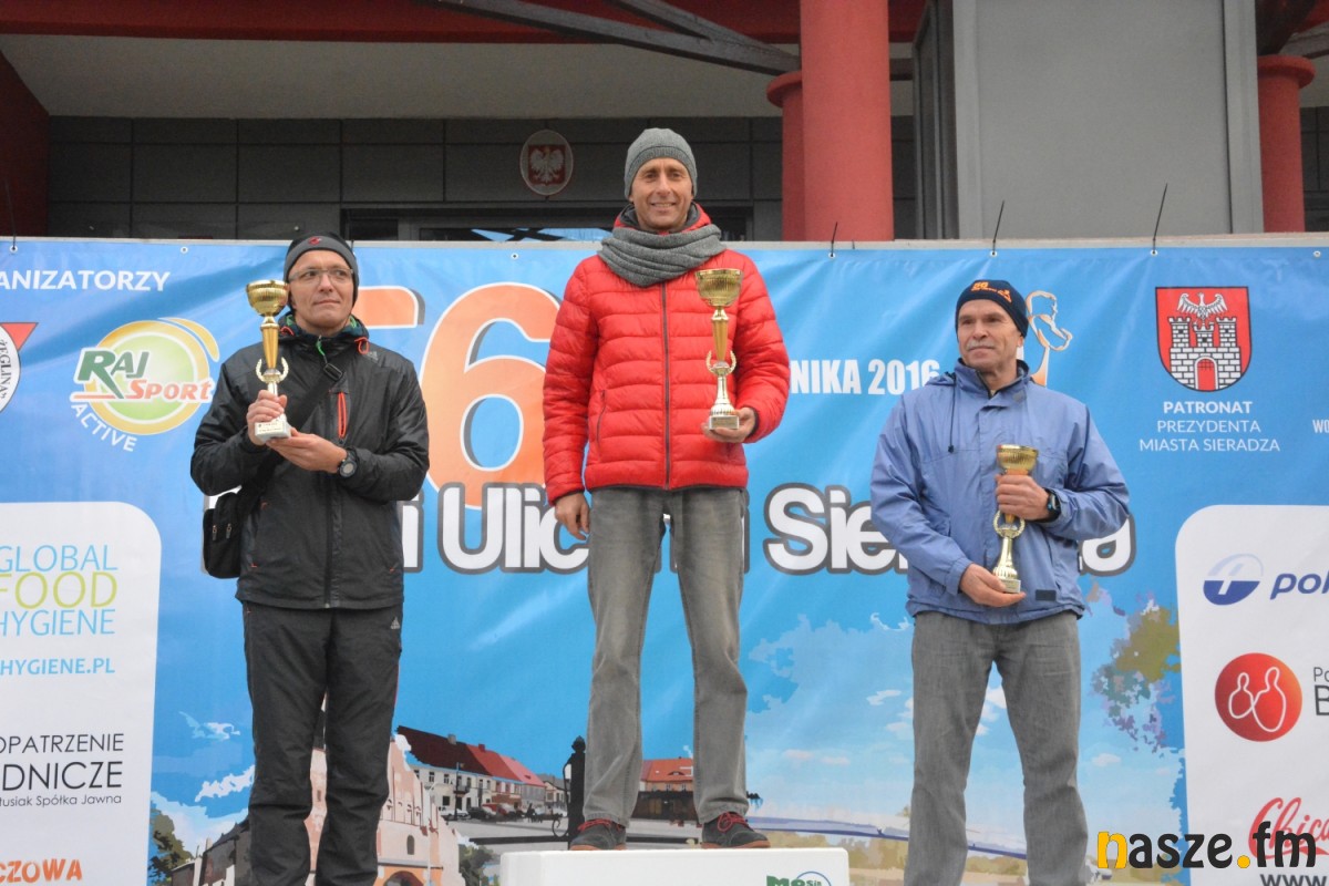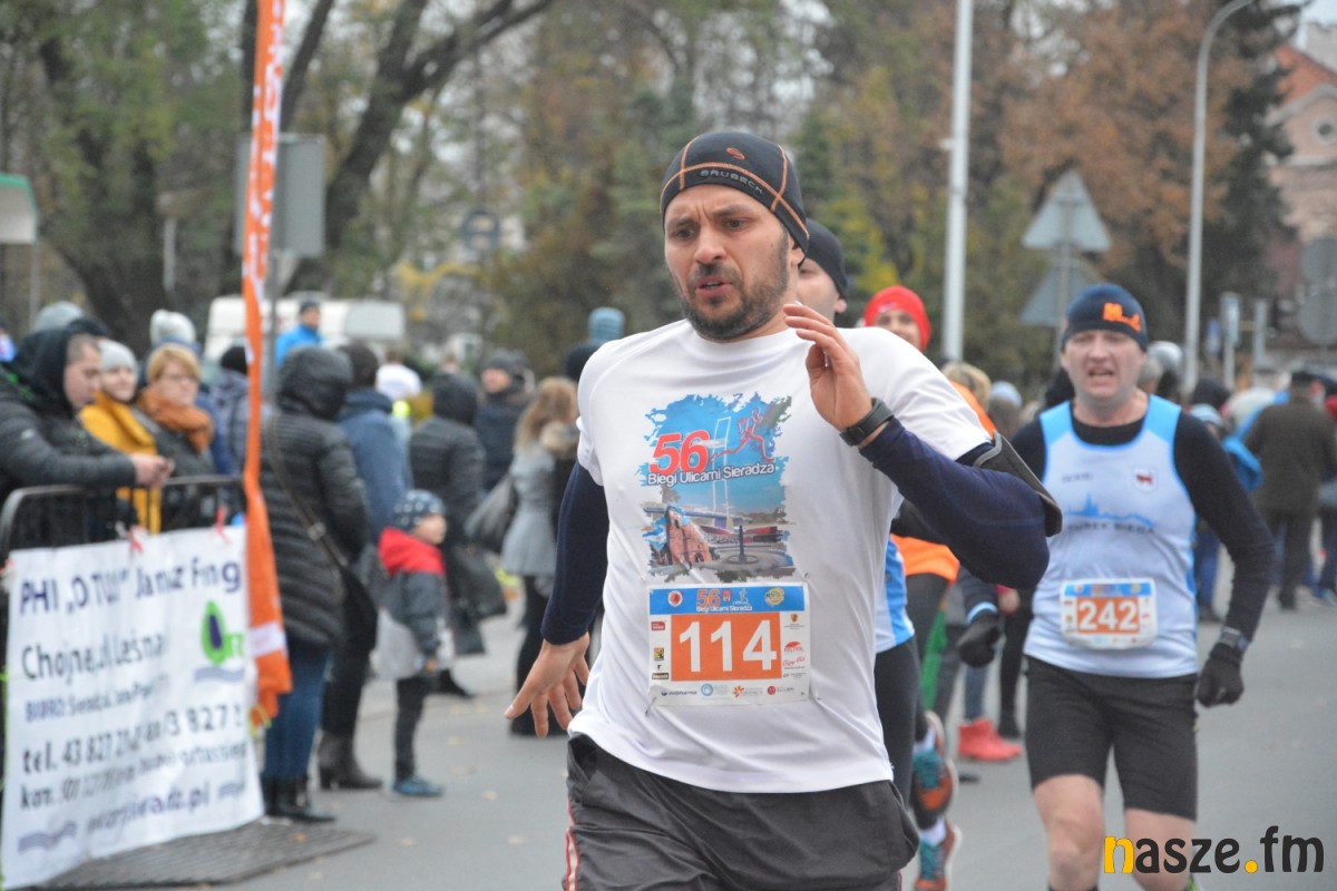 - Praktycznie do 9 kilometra biegliśmy razem, na finiszu młodzież okazała się szybsza - powiedział na mecie Kozłowski, który odebrał nagrodę dla najlepszego sieradzanina biegów. O atmosferze towarzyszącej biegowi niech świadczy wypowiedź zwycięzcy - Znamy się z Arturem bardzo dobrze, na trasie opowiadał nam o swoim mieście, mówił, jakie miejsca mijamy - mówił na mecie Tomasz Osmulski. Najszybszą kobietą na trasie była Natalia Grzegorczyk, która swoje największe sukcesy odnosi w biegach górskich. Bieg główny poprzedziły tradycyjnie wyścigi dzieci i młodzieży w kategoriach szkół podstawowych, gimnazjalnych i ponadgimnazjalnych. Był także bieg rodzinny na symbolicznym dystansie jednego kilometra. Kilku uczestników potraktowało go, jak rozgrzewkę przed biegiem głównym, towarzysząc np. swoim dzieciom. Bieg na 10 km odbywał się na dwóch pętlach po 5 km. Co ważne, trasa posiadała atest PZLA, więc można się pokusić o pobicie rekordu życiowego i choć takowych dziś nie brakowało, wcale nie było o to łatwo. Na trasie było kilka podbiegów, co z pewnością stanowiło spore utrudnienie. Ważne jednak, że większość kończyła zawody w doskonałym humorze, a w końcu o to chodzi w biegach masowych. Warto dodać, że na starcie stanęła rekordowa liczba ok. 500 uczestników. Na wszystkich czekały również niespodzianki już za metą. Przy odrobinie szczęścia można było wygrać rower lub markowe koszulki sportowe, w pakiecie startowym znajdowała się m.in.koszulka techniczna z logo imprezy, piękny pamiątkowy medal, czy bon żywieniowy. 56. Biegi Ulicami Sieradza zorganizowały kluby: Żeglina i Raj Sport Active, przy współudziale Urzędu Miasta Sieradza.