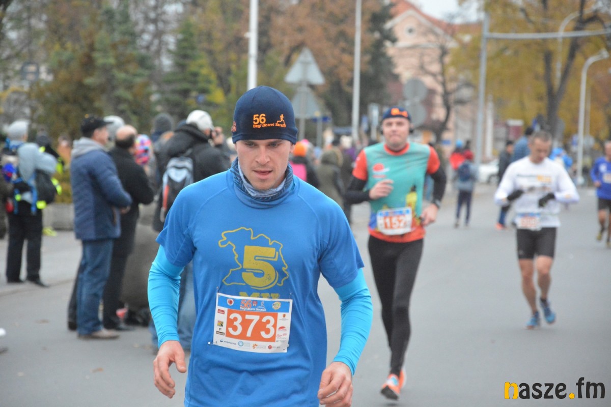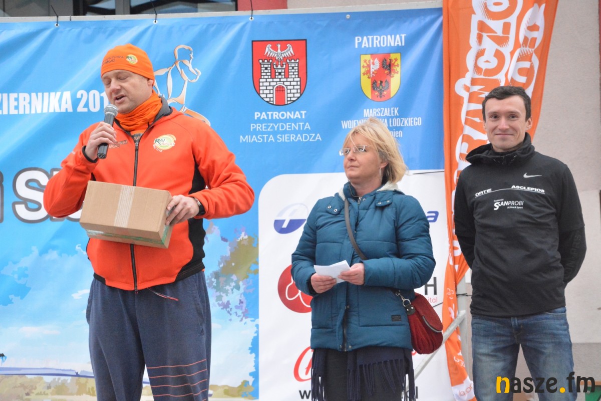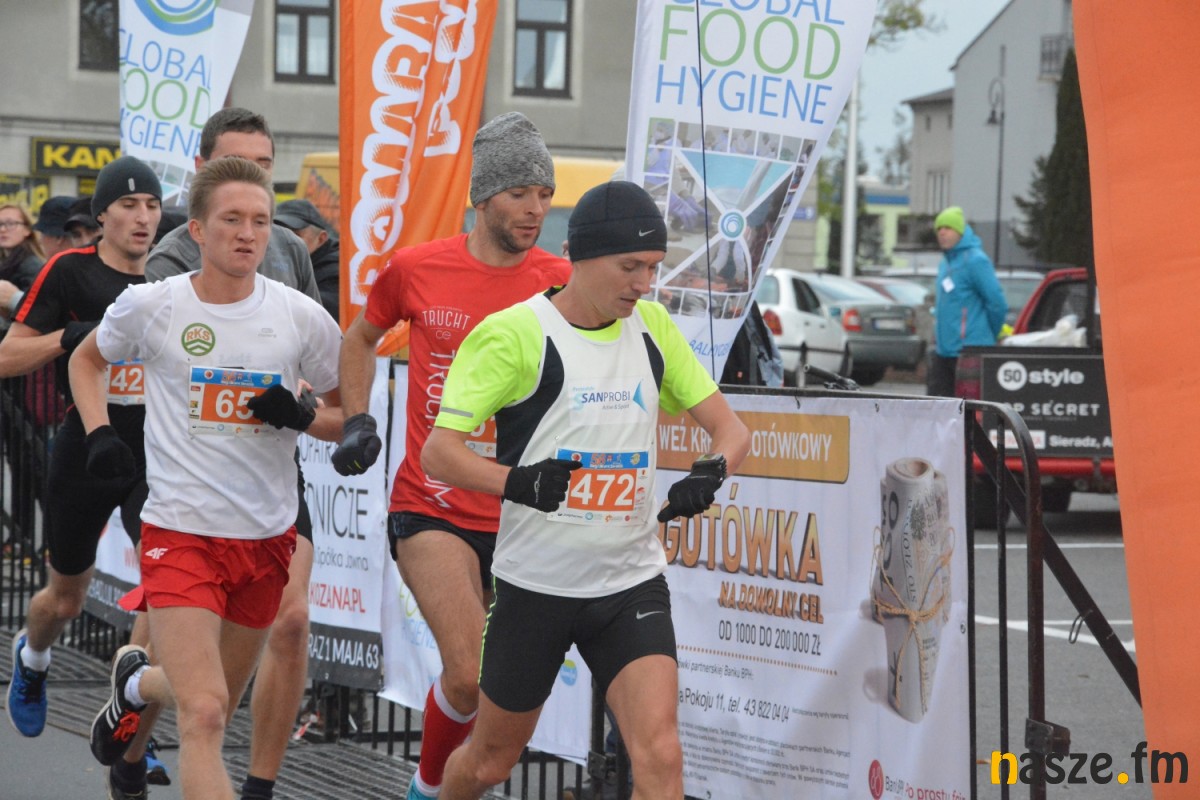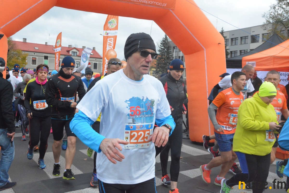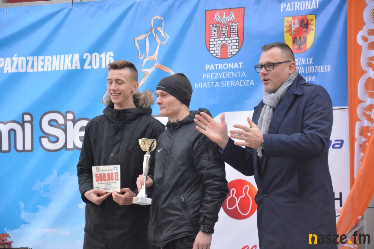 - Praktycznie do 9 kilometra biegliśmy razem, na finiszu młodzież okazała się szybsza - powiedział na mecie Kozłowski, który odebrał nagrodę dla najlepszego sieradzanina biegów. O atmosferze towarzyszącej biegowi niech świadczy wypowiedź zwycięzcy - Znamy się z Arturem bardzo dobrze, na trasie opowiadał nam o swoim mieście, mówił, jakie miejsca mijamy - mówił na mecie Tomasz Osmulski. Najszybszą kobietą na trasie była Natalia Grzegorczyk, która swoje największe sukcesy odnosi w biegach górskich. Bieg główny poprzedziły tradycyjnie wyścigi dzieci i młodzieży w kategoriach szkół podstawowych, gimnazjalnych i ponadgimnazjalnych. Był także bieg rodzinny na symbolicznym dystansie jednego kilometra. Kilku uczestników potraktowało go, jak rozgrzewkę przed biegiem głównym, towarzysząc np. swoim dzieciom. Bieg na 10 km odbywał się na dwóch pętlach po 5 km. Co ważne, trasa posiadała atest PZLA, więc można się pokusić o pobicie rekordu życiowego i choć takowych dziś nie brakowało, wcale nie było o to łatwo. Na trasie było kilka podbiegów, co z pewnością stanowiło spore utrudnienie. Ważne jednak, że większość kończyła zawody w doskonałym humorze, a w końcu o to chodzi w biegach masowych. Warto dodać, że na starcie stanęła rekordowa liczba ok. 500 uczestników. Na wszystkich czekały również niespodzianki już za metą. Przy odrobinie szczęścia można było wygrać rower lub markowe koszulki sportowe, w pakiecie startowym znajdowała się m.in.koszulka techniczna z logo imprezy, piękny pamiątkowy medal, czy bon żywieniowy. 56. Biegi Ulicami Sieradza zorganizowały kluby: Żeglina i Raj Sport Active, przy współudziale Urzędu Miasta Sieradza.