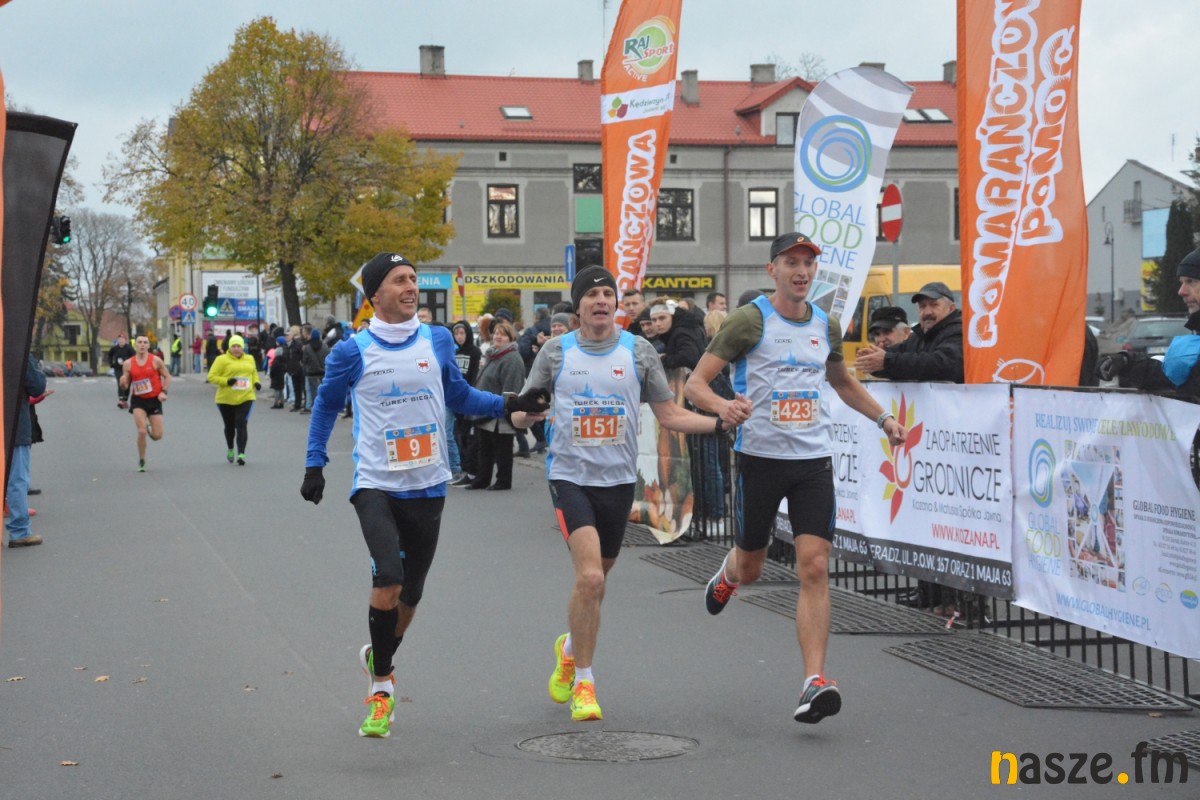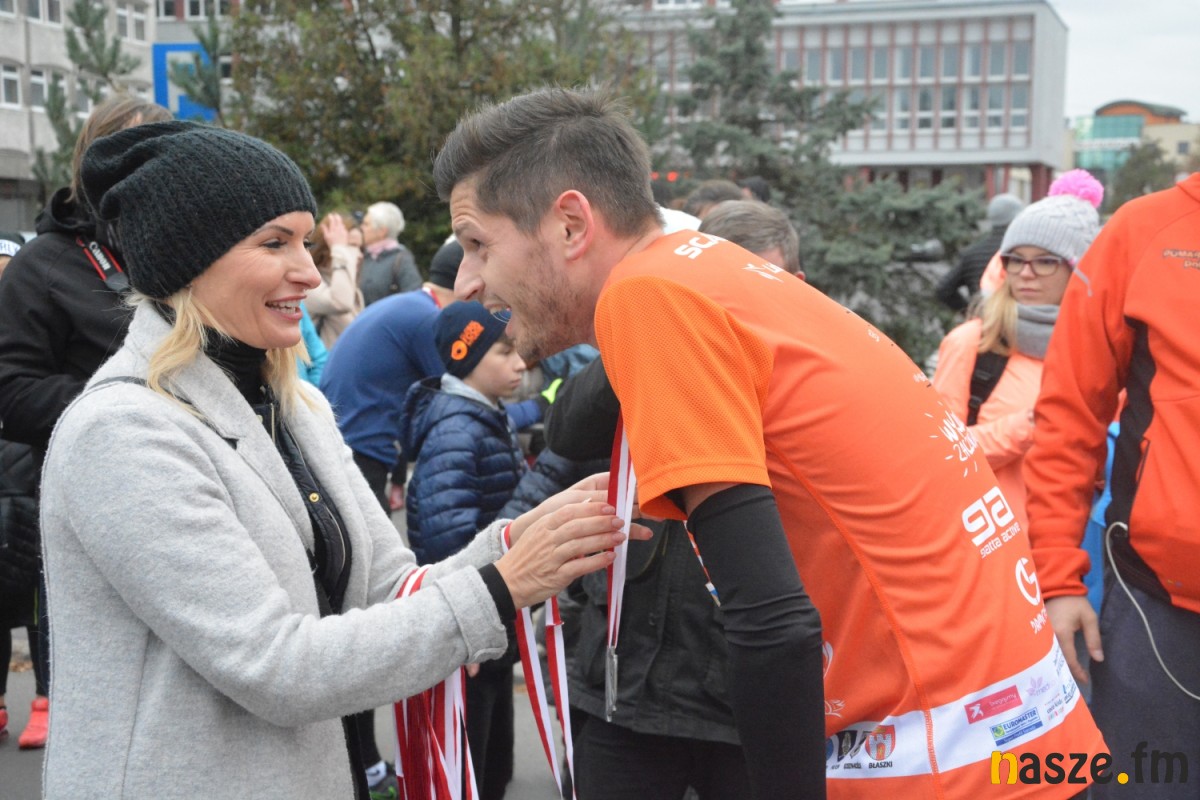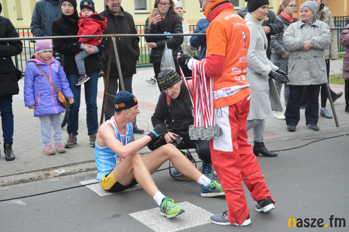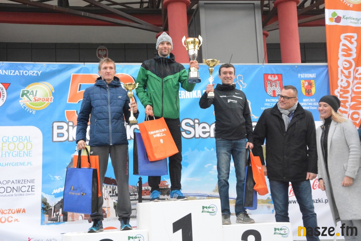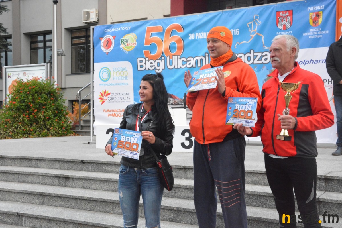 - Praktycznie do 9 kilometra biegliśmy razem, na finiszu młodzież okazała się szybsza - powiedział na mecie Kozłowski, który odebrał nagrodę dla najlepszego sieradzanina biegów. O atmosferze towarzyszącej biegowi niech świadczy wypowiedź zwycięzcy - Znamy się z Arturem bardzo dobrze, na trasie opowiadał nam o swoim mieście, mówił, jakie miejsca mijamy - mówił na mecie Tomasz Osmulski. Najszybszą kobietą na trasie była Natalia Grzegorczyk, która swoje największe sukcesy odnosi w biegach górskich. Bieg główny poprzedziły tradycyjnie wyścigi dzieci i młodzieży w kategoriach szkół podstawowych, gimnazjalnych i ponadgimnazjalnych. Był także bieg rodzinny na symbolicznym dystansie jednego kilometra. Kilku uczestników potraktowało go, jak rozgrzewkę przed biegiem głównym, towarzysząc np. swoim dzieciom. Bieg na 10 km odbywał się na dwóch pętlach po 5 km. Co ważne, trasa posiadała atest PZLA, więc można się pokusić o pobicie rekordu życiowego i choć takowych dziś nie brakowało, wcale nie było o to łatwo. Na trasie było kilka podbiegów, co z pewnością stanowiło spore utrudnienie. Ważne jednak, że większość kończyła zawody w doskonałym humorze, a w końcu o to chodzi w biegach masowych. Warto dodać, że na starcie stanęła rekordowa liczba ok. 500 uczestników. Na wszystkich czekały również niespodzianki już za metą. Przy odrobinie szczęścia można było wygrać rower lub markowe koszulki sportowe, w pakiecie startowym znajdowała się m.in.koszulka techniczna z logo imprezy, piękny pamiątkowy medal, czy bon żywieniowy. 56. Biegi Ulicami Sieradza zorganizowały kluby: Żeglina i Raj Sport Active, przy współudziale Urzędu Miasta Sieradza.