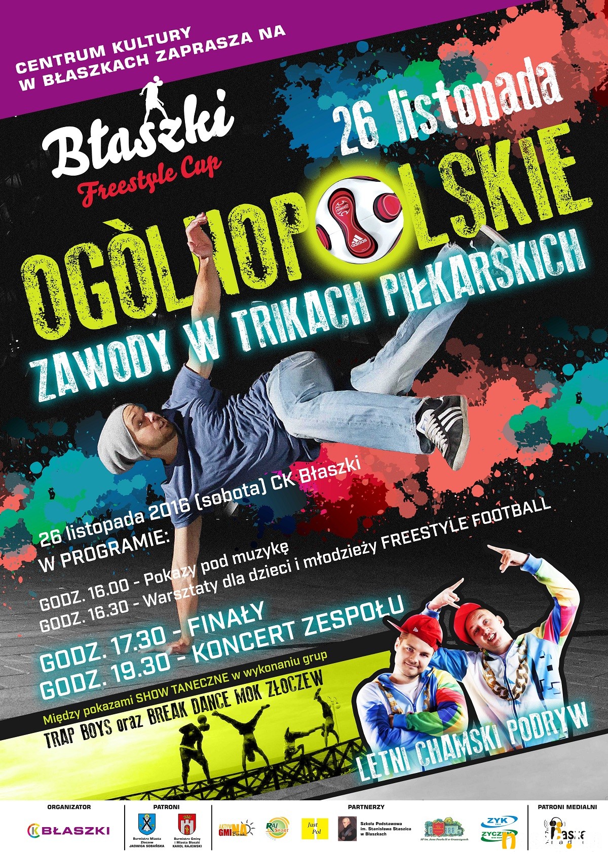 Impreza w Błaszkach rozpocznie się o 16:00, finały potrwają do 19:30. Wstęp oczywiście wolny, zapraszamy!