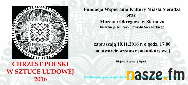 W najbliższy czwartek (10 listopada) w Muzeum Okręgowym w Sieradzu odbędzie się otwarcie wystawy pokonkursowej zatytułowanej "Chrzest Polski w sztuce ludowej 2016". Początek o godzinie 17.