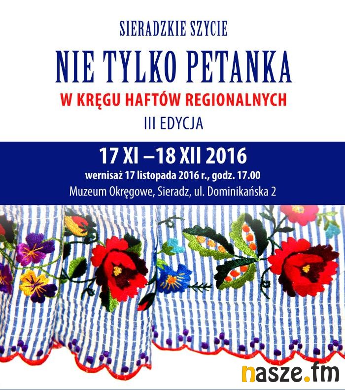 17 listopada ( czwartek ) w Muzeum Okręgowym w Sieradzu odbędzie się wernisaż wystawy zatytułowanej: Sieradzkie szycie - nie tylko petanka w w kręgu haftów regionalnych. Wydarzenie rozpocznie się o godzinie 17.