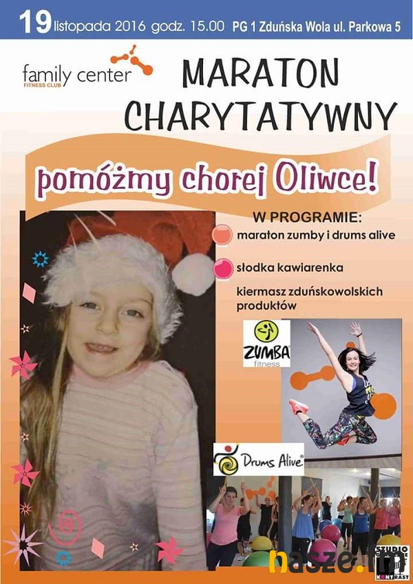 W pomoc 5-letniej Oliwce Wieczorek, która choruje na złośliwy nowotwór oczu włącza się również Fitness Club Family Center. W najbliższą sobotę, 19 listopada, zorganizowany zostanie charytatywny Maraton Zumby.