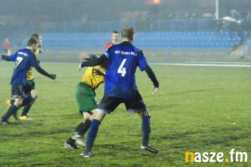 Piłkarskie derby Zduńskiej Woli dla Pogoni. Drużyna z Łaskiej wygrała na boisku PMOS 3:2 z miejscowym MKS-em. Mecz rozegrano przy sztucznym świetle w strugach deszczu.