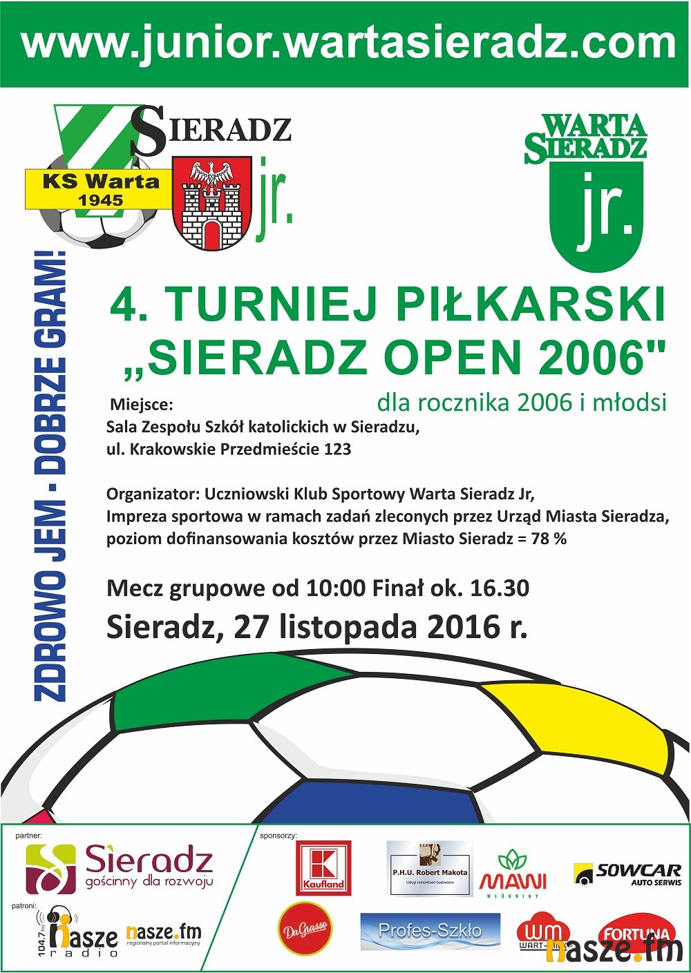 W niedzielę rywalizować będą drużyny z rocznika 2006. Będzie to już 4. turniej Sieradz Open 2006. W tym roku odbędzie się pod hasłem Zdrowo jem - dobrze gram. W zawodach weźmie udział 10 zespołów: z Sieradza, Łodzi, Pabianic, Zgierza, Warty, Burzenina i Rąbieni.